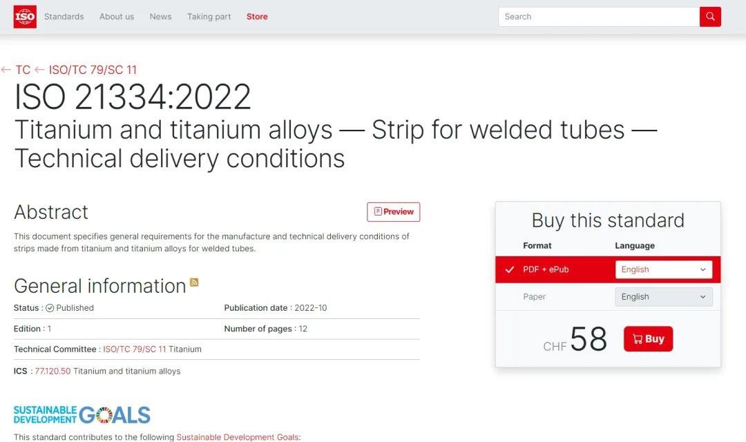 日前,國際標(biāo)準(zhǔn)化組織(ISO)正式發(fā)布了寶鈦集團主導(dǎo)制定的鈦領(lǐng)域國際標(biāo)準(zhǔn)《Titanium and titanium alloys — Strip for welded tube-Technical delivery conditions》(ISO 21334-2022)。這是首個由中國主導(dǎo)的ISO鈦加工材國際標(biāo)準(zhǔn),也是繼今年4月寶鈦主導(dǎo)制定的首個ISO標(biāo)準(zhǔn)《Titanium and Titanium alloys—Designation system》(ISO 23515-2022)正式發(fā)布實施之后,公司在鈦領(lǐng)域標(biāo)準(zhǔn)國際化上取得的又一項重要成果。