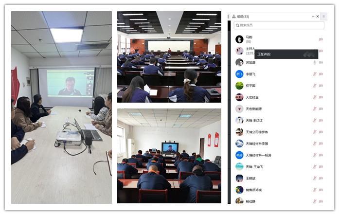 4月6日,天瑞硅材料在行政樓四樓多功能會議室舉行學習貫徹全國兩會精神宣講報告會,公司黨委副書記、總經理蘇旭盛作宣講報告。報告會采用線上線下相結合的方式進行,天瑞硅材料、天宏新能源、天宏硅業(yè)機關部室黨員干部、中層領導及職工代表110余人參加學習。