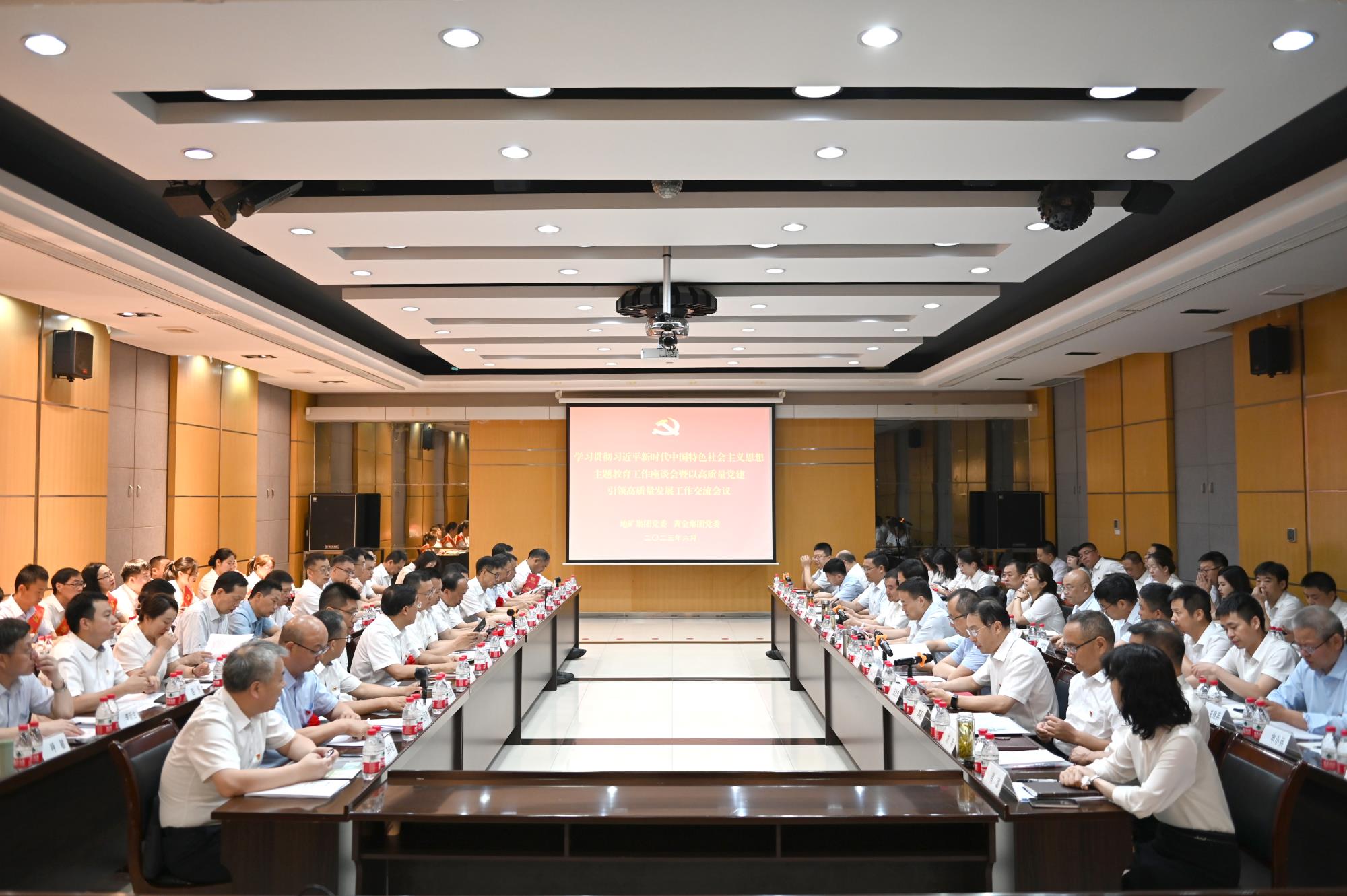 為階段性總結(jié)主題教育成果,以黨建工作與生產(chǎn)經(jīng)營深度融合推動兩集團高質(zhì)量發(fā)展,6月29日,地礦集團黨委、黃金集團黨委召開學習貫徹習近平新時代中國特色社會主義思想主題教育工作座談會暨以高質(zhì)量黨建引領高質(zhì)量發(fā)展工作交流會議,學習傳達上級有關(guān)會議精神,了解各單位主題教育進展情況,交流以高質(zhì)量黨建引領高質(zhì)量發(fā)展的經(jīng)驗做法,查找問題不足,聽取意見建議,進一步推動主題教育扎實開展。兩集團領導班子成員、助理級干部、本部中層干部、權(quán)屬單位主要負責人和主題教育牽頭部門負責人等共80余人參加會議。