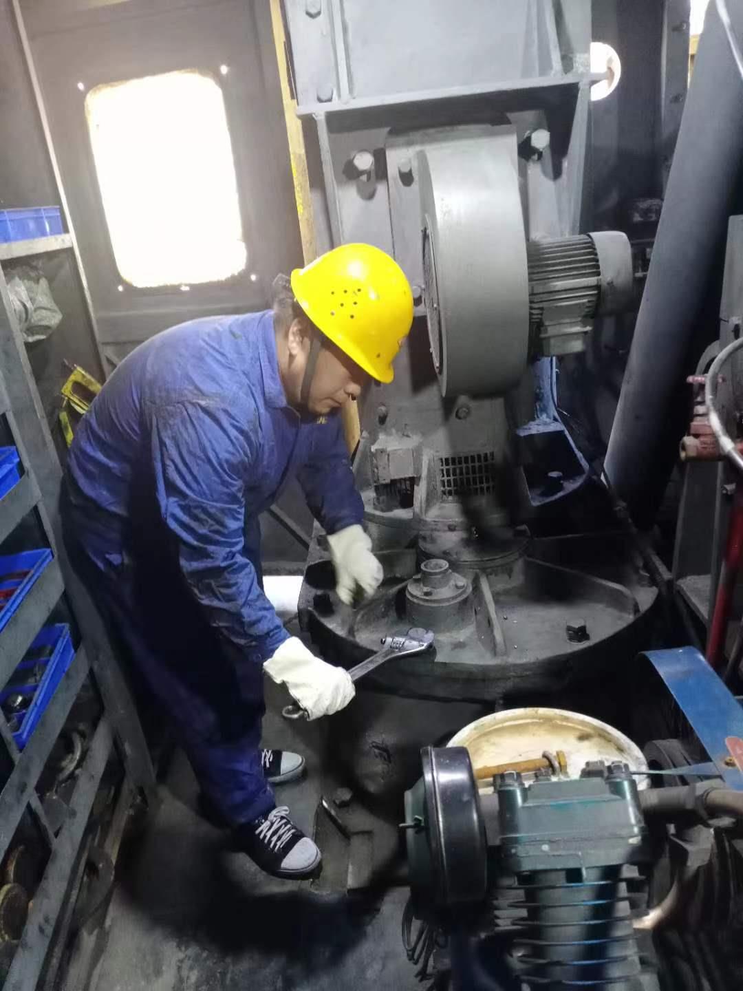 2017年,70#電鏟滾筒底座變形,隨時會造成電鏟損壞,若是得不到及時處理就會造成電鏟更加嚴重的次生損傷。賈煥煥得知這個情況后,立即聯(lián)系車間領(lǐng)導(dǎo),協(xié)同技術(shù)組共同探討解決方案,最終決定采用鋼板對其底座進行加固處理。由于底座處空間過小,最多只能容納兩個人,自己又對底座構(gòu)造比較了解,他便毫不猶豫地鉆了進去,配合焊工作業(yè)。當(dāng)焊工開始工作時,濃煙滾滾,即使戴著防護眼鏡和口罩,也嗆得眼淚直流,只能干一小會兒,就要從底座里爬出來,讓作業(yè)空間里的煙霧排一排,然后鉆進去再繼續(xù)接著焊。由于加固底座工作量較大,賈煥煥主動加班,力爭盡快修復(fù),投入生產(chǎn),這一干就是36個小時。完工后,賈煥煥從電鏟底盤處緩緩鉆出來,只見他滿臉、滿身黑油,摘下防護眼鏡,眼部和周圍的膚色形成了鮮明的對比,而且眼睛被煙熏的紅腫了,眼淚直流,最終比計劃提前24小時完成了底盤修復(fù)工作,在對其他部位檢查完好后,立馬就開始了正常的安全生產(chǎn),確保鏟裝作業(yè)環(huán)節(jié)有序高效。
