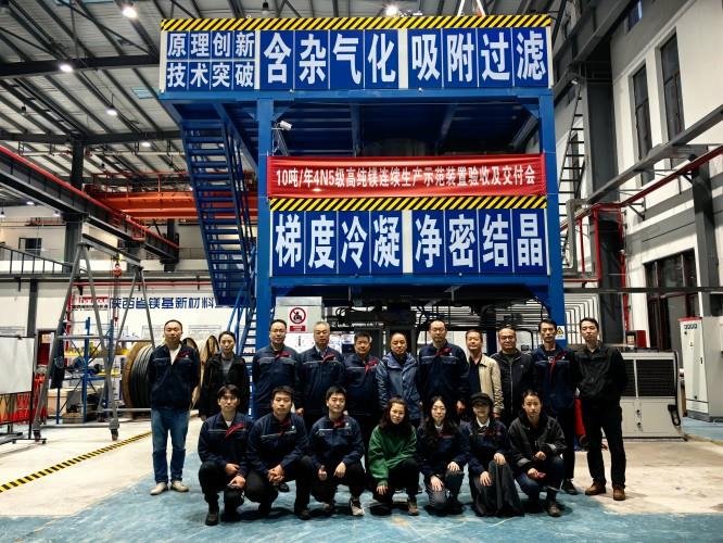 近年來(lái),裝備科技公司聯(lián)合西安交通大學(xué)單智偉教授研究團(tuán)隊(duì),經(jīng)過(guò)多年潛心研究和科研攻關(guān),基于氣態(tài)原子選擇性分離來(lái)除雜的新思路,吸收消化“含雜氣化,梯度冷凝,吸附過(guò)濾,凈密結(jié)晶”系列技術(shù),研發(fā)制造了“10噸/年Mg99995級(jí)高純鎂半連續(xù)化生產(chǎn)示范裝置”,以期實(shí)現(xiàn)99.995%高純鎂的低成本規(guī)?;€(wěn)定制備。2020年,開始籌劃并進(jìn)行相應(yīng)原理技術(shù)攻關(guān)、驗(yàn)證;2022年,正式著手工程方案設(shè)計(jì),并歷經(jīng)了八輪論證評(píng)審;今年1月,該示范裝置開始進(jìn)行設(shè)備制造,8月進(jìn)入駐基地安裝、調(diào)試,11月正式交付。