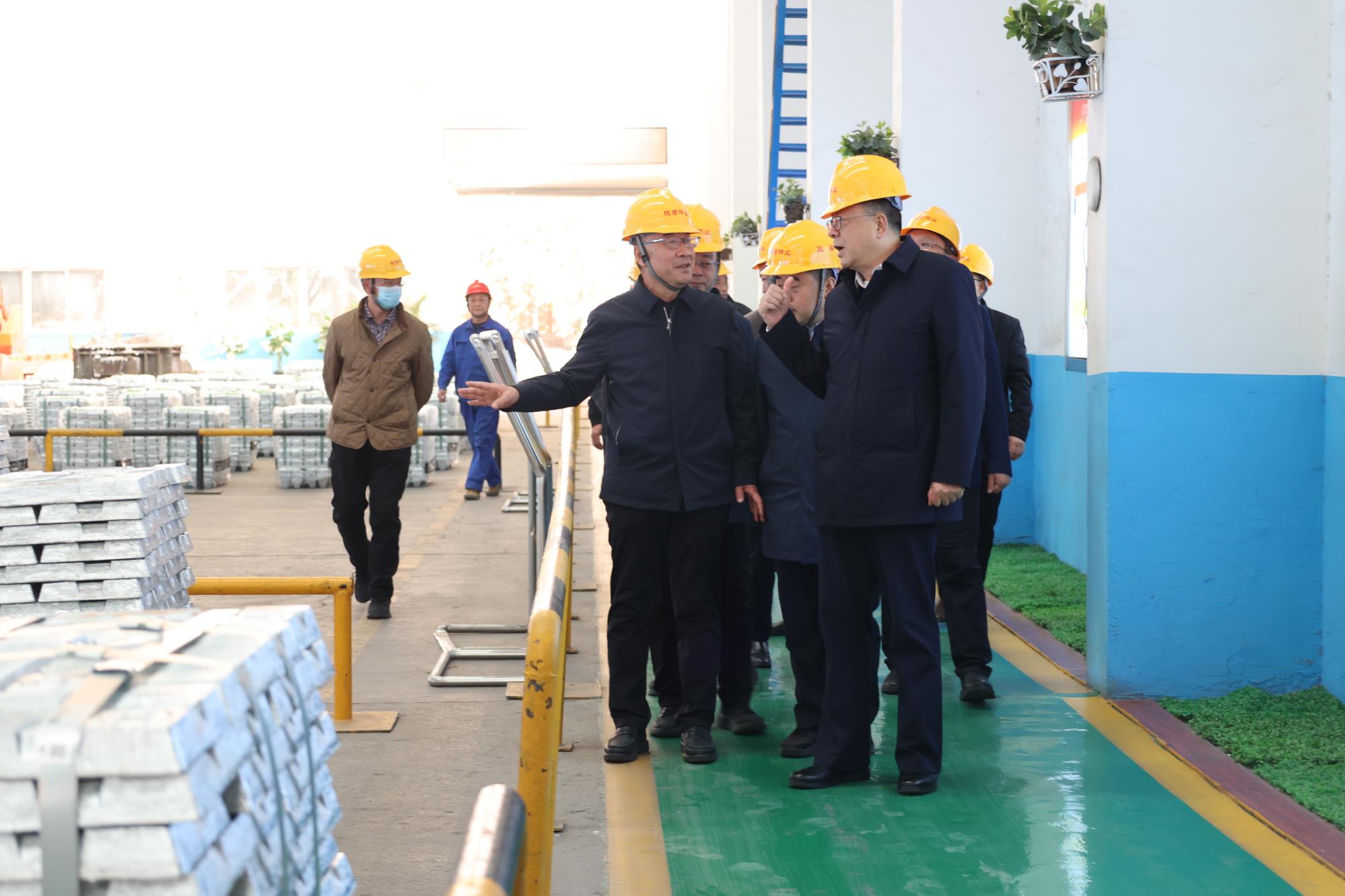 盧建軍一行先后觀看了公司宣傳片及展品展柜,現(xiàn)場參觀了陰極焊板智能制造、熔鑄機器人自動碼垛等生產(chǎn)現(xiàn)場,在技術中心大樓參觀了總調(diào)度指揮中心等生產(chǎn)場所。