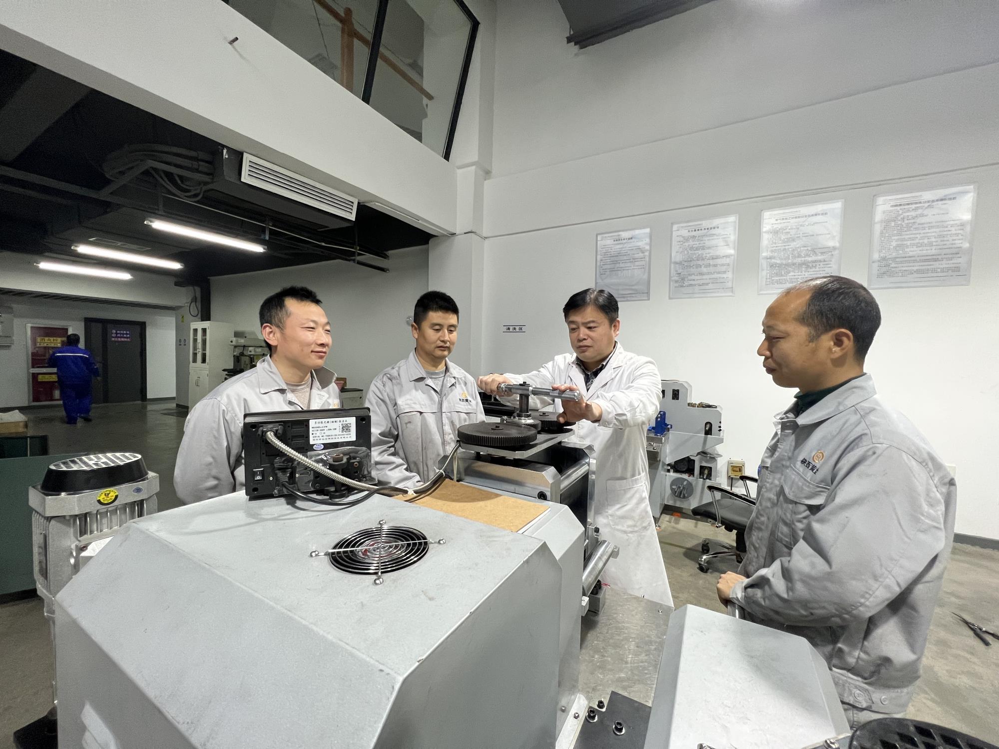 技術(shù)人員軋制、調(diào)試銀帶成型機(jī)