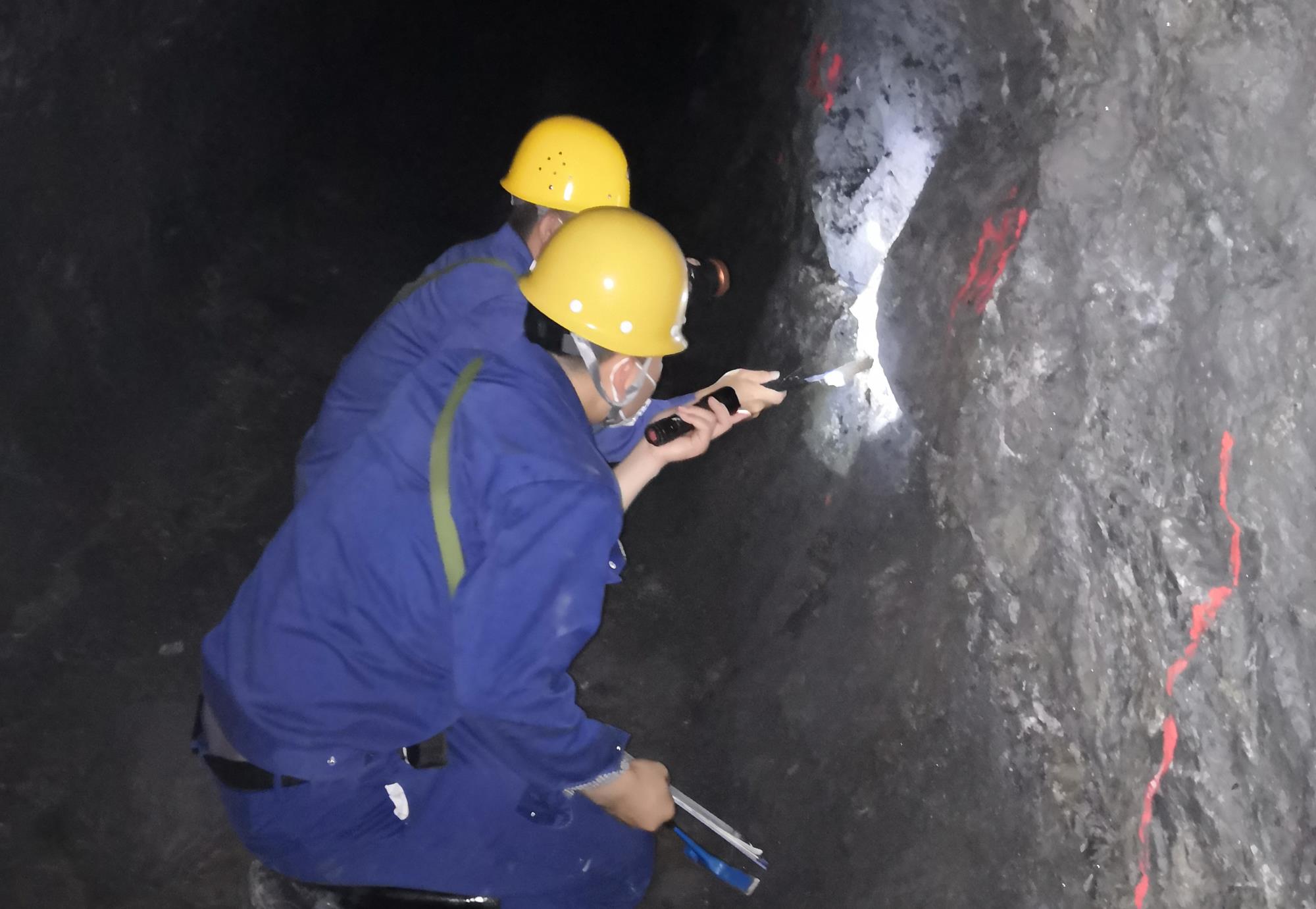 在西北有色鉛鋅集團(tuán)鳳縣東塘子鉛鋅礦床詳查項(xiàng)目現(xiàn)場,717總隊(duì)公司的地質(zhì)技術(shù)人員張佳峰和楊有龍正在坑道里采樣、編錄和測量,他們想盡快圈出成礦有利地段,以便做進(jìn)一步的打鉆驗(yàn)證。