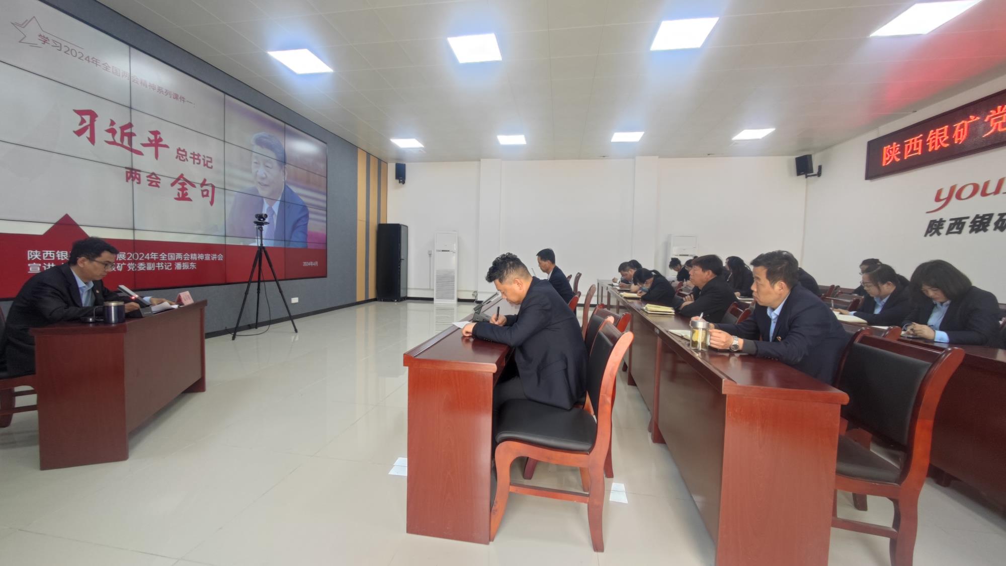 春風(fēng)滿面萬物蘇,生機勃勃氣象新。隨著十四屆全國人大二次會議、全國政協(xié)十四屆二次會議在北京閉幕,陜西銀礦廣大黨員干部職工迅速掀起學(xué)習(xí)領(lǐng)會“兩會”精神的熱潮。根據(jù)公司黨委工作安排,4月9日下午,陜西銀礦黨委舉行全國“兩會”精神學(xué)習(xí)宣講報告會。公司黨委副書記潘振東宣講全國“兩會”精神的主要內(nèi)容,公司廣大黨員和入黨積極分子約20人參加宣講報告會。