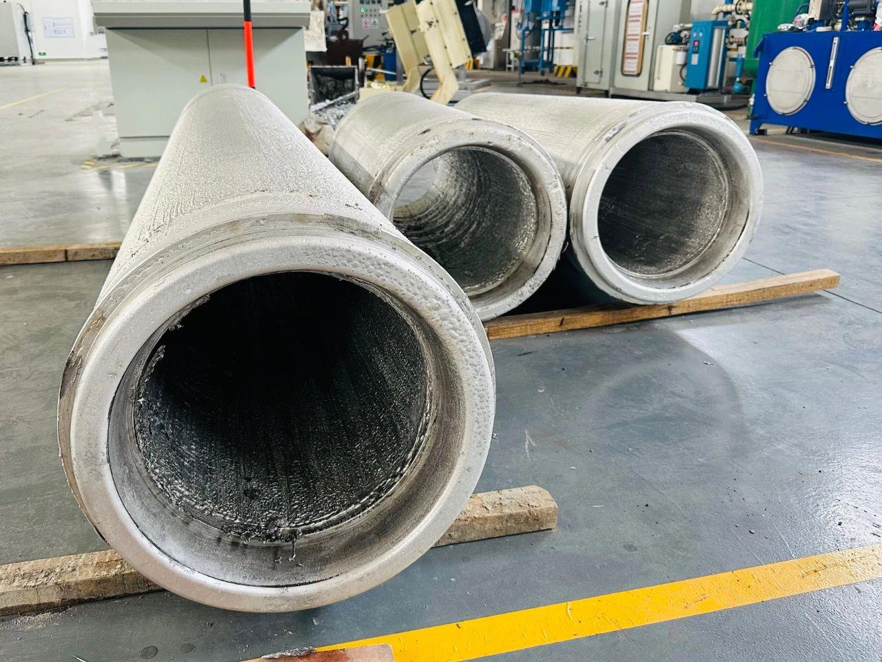 近日,榆林新材料集團研發(fā)中心與某鋁合金企業(yè)聯(lián)合研發(fā)的鋁錫合金空心管狀鑄件,在中試生產(chǎn)線熔鑄產(chǎn)線試制成功,所制鋁管外徑485毫米,內(nèi)徑365毫米,總長度2780毫米,實現(xiàn)了60毫米薄壁管件連續(xù)鑄造,而目前使用深井鑄造工藝生產(chǎn)此類管狀鑄件,設(shè)計壁厚普遍為80到100毫米。本次試驗成果將能極大降低了后序精、深加工難度,減少加工余量,提高材料利用率和生產(chǎn)效率,推動落實“降本增效”目標(biāo)。