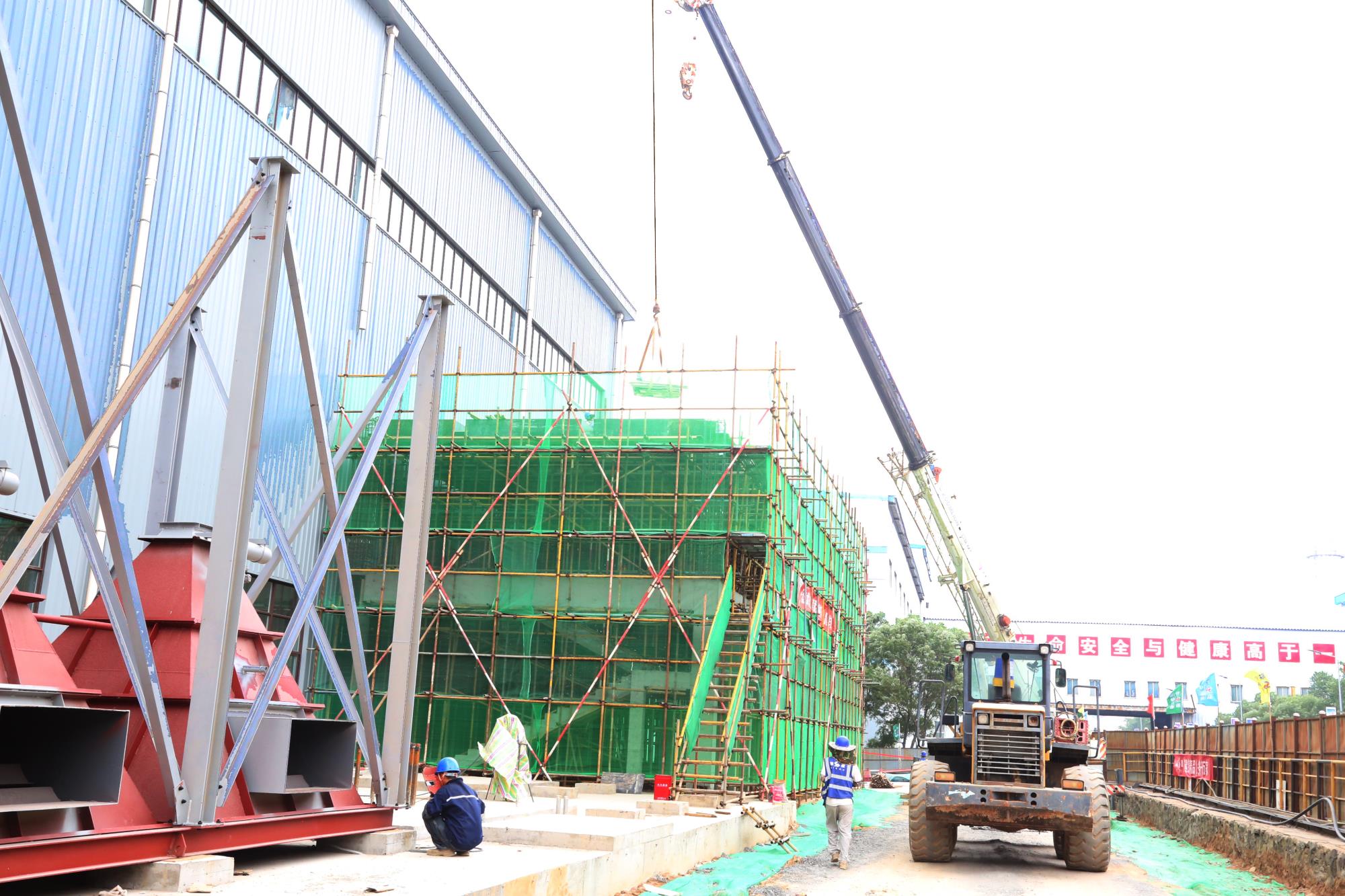 工作人員配合吊車正在進(jìn)行吊運(yùn)工作