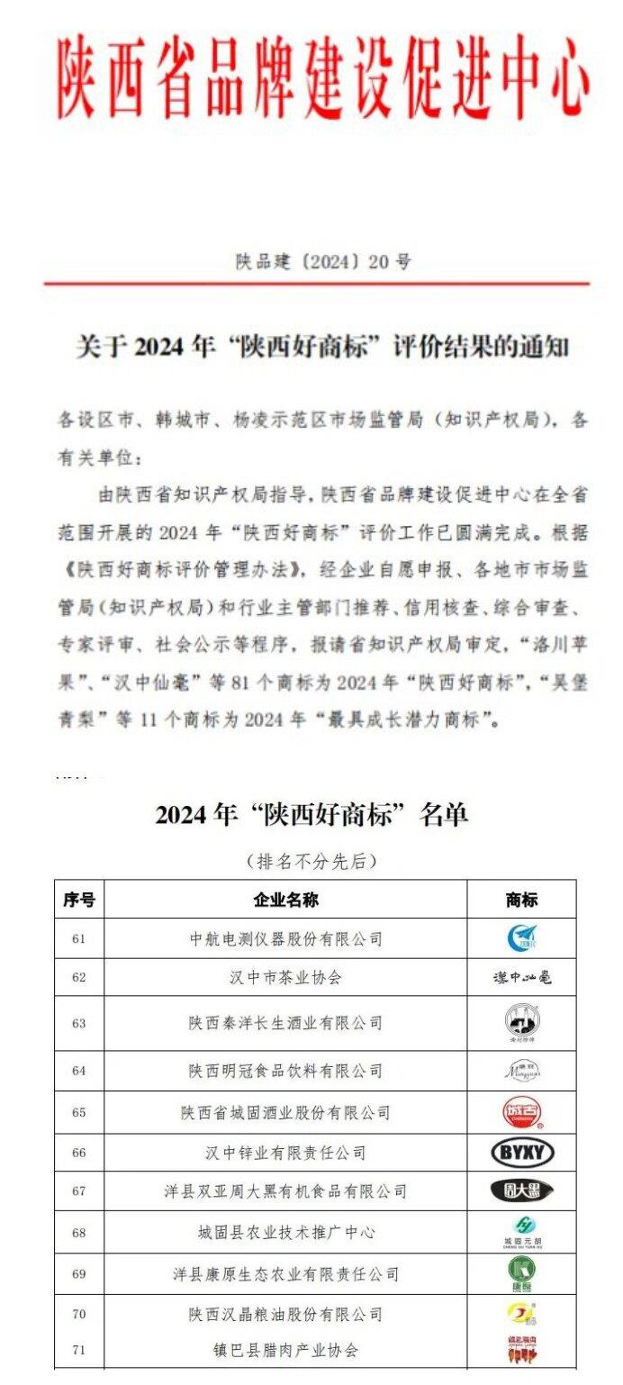 據(jù)悉,2024年“陜西好商標(biāo)”評(píng)選由陜西省知識(shí)產(chǎn)權(quán)局指導(dǎo),通過企業(yè)申報(bào)、各地市場(chǎng)監(jiān)管部門推薦、信用核查、綜合評(píng)審和社會(huì)公示等嚴(yán)格程序,最終,包括“BYXY”“漢中仙毫”等81個(gè)商標(biāo)榮獲“陜西好商標(biāo)”稱號(hào)。