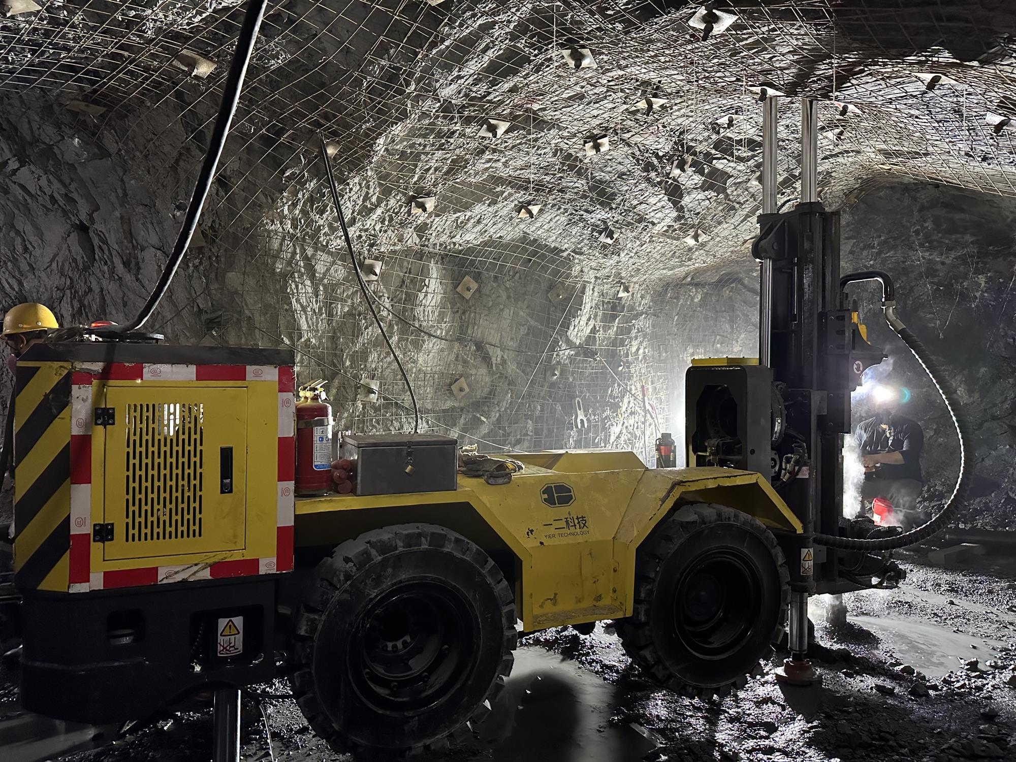 目前,全國非煤礦山0-20米深度的天井施工工藝主要以人工掘進為主,存在冒頂片幫、中毒窒息、高空墜落等風險,作業(yè)人員勞動強度大,施工效率低,現(xiàn)場安全管理難度較大。中深孔一次成井工藝優(yōu)勢明顯,人員不進入天井,采用地下環(huán)形潛孔鉆機自上而下全深度一次鉆孔,2-3日內便可完成施工任務,工作效率和安全性大幅提高。