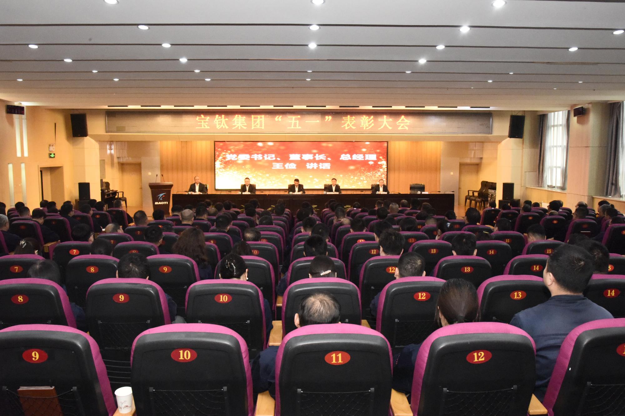 4月28日下午,寶鈦集團在寶鈦賓館七樓學術報告廳召開“五一”表彰大會。寶鈦集團黨委書記、董事長、總經(jīng)理王儉出席會議并講話,黨委副書記、工會主席賀治民主持會議。