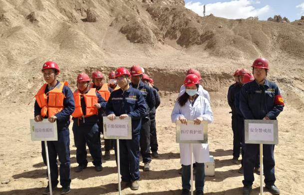 演練模擬因遭遇持續(xù)強降雨,山體滑坡堵塞尾礦庫排洪系統(tǒng),庫內(nèi)水位急劇上升,即將面臨漫壩造成環(huán)境污染事件。演練開始后,格爾木銀興公司安委會立即啟動應急預案,并及時向甲方相關(guān)部門報告險情,迅速成立現(xiàn)場應急救援指揮部,緊急調(diào)集搶險、醫(yī)療、警戒、后勤保障四支救援力量,快速趕赴事故現(xiàn)場開展救援。各應急救援小組嚴格依據(jù)應急預案和既定職責分工,各負其責,有條不紊地迅速展開疏散、警戒、應急物資及時到位,按預案處置措施現(xiàn)場施救,完成排洪系統(tǒng)的清理、壩頂加固,險情解除。