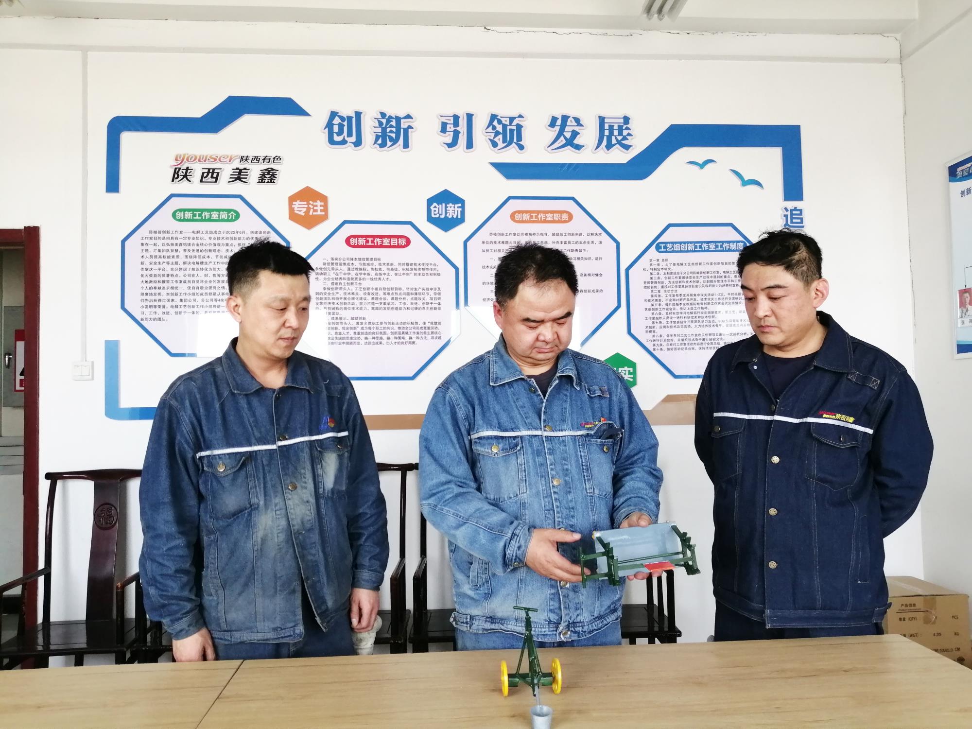 陳繼普有句口頭禪:“一個(gè)人再能,頂不上大伙兒抱團(tuán)”。2023年1月,公司成立“陳繼普創(chuàng)新工作室”,他也迅速轉(zhuǎn)變身份,提出“問(wèn)題池—攻關(guān)鏈—成果樹(shù)”的創(chuàng)新機(jī)制,定期組織“難題診斷會(huì)”,對(duì)“難點(diǎn)、痛點(diǎn)”問(wèn)題進(jìn)行攻堅(jiān);鼓勵(lì)一線工人主動(dòng)提升技能水平,立足崗位積極參與技術(shù)創(chuàng)新。這種“全新”的模式,極大的促進(jìn)了技術(shù)革新的速度,針對(duì)氧化鋁下料工藝升級(jí)后暴露的能耗痛點(diǎn)實(shí)施精準(zhǔn)改造,改造完成后,一年節(jié)約用電24萬(wàn)多度。帶頭撰寫(xiě)的《鋁電解新系列啟動(dòng)高位殘極在線消化方法的創(chuàng)新與應(yīng)用》,通過(guò)科學(xué)換極策略與周期優(yōu)化,實(shí)現(xiàn)殘極高效循環(huán)利用,顯著降低成本和能耗,兼具經(jīng)濟(jì)效益與環(huán)保價(jià)值。在他的帶領(lǐng)下,車間黨支部成功斬獲陜西省國(guó)資系統(tǒng)“標(biāo)準(zhǔn)化規(guī)范化示范黨支部”,為陜西有色金屬集團(tuán)此次7個(gè)獲得“標(biāo)準(zhǔn)化規(guī)范化建設(shè)示范黨支部”榮譽(yù)的黨組織之一。