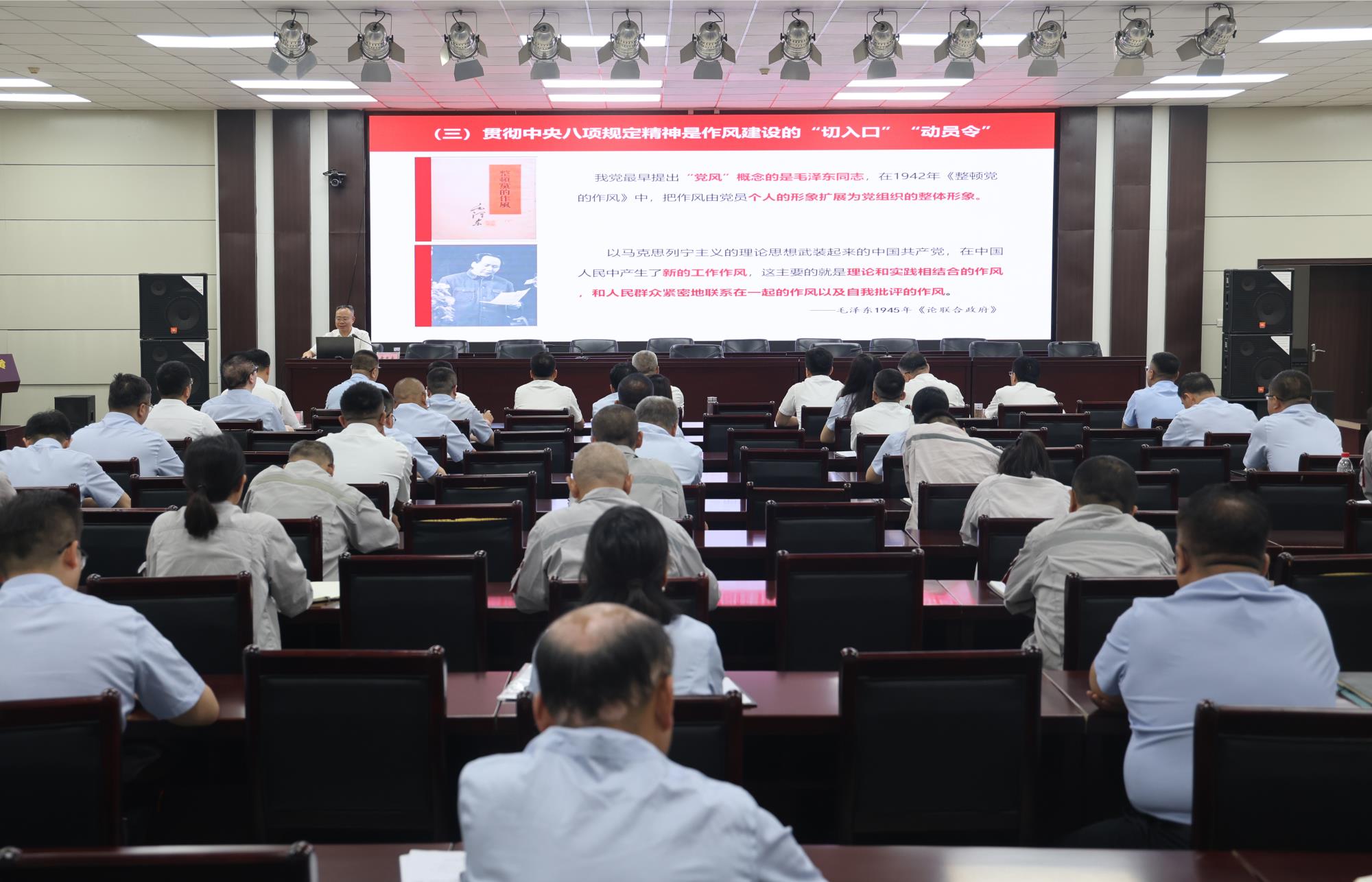 6月30日,陜西有色金屬集團(tuán)黨委委員、副總經(jīng)理黃忠良以“鍥而不舍落實中央八項規(guī)定精神,以作風(fēng)建設(shè)新成效賦能高質(zhì)量轉(zhuǎn)型升級”為主題,為陜西美鑫公司黨員干部講授深入貫徹中央八項規(guī)定精神學(xué)習(xí)教育專題黨課。陜西美鑫公司領(lǐng)導(dǎo)班子成員,機(jī)關(guān)各部門負(fù)責(zé)人,二級單位黨組織負(fù)責(zé)人、綜合辦公室主任、黨務(wù)專責(zé),鋁鎂合金分公司電解二車間黨員代表共計50余人聆聽黨課。
