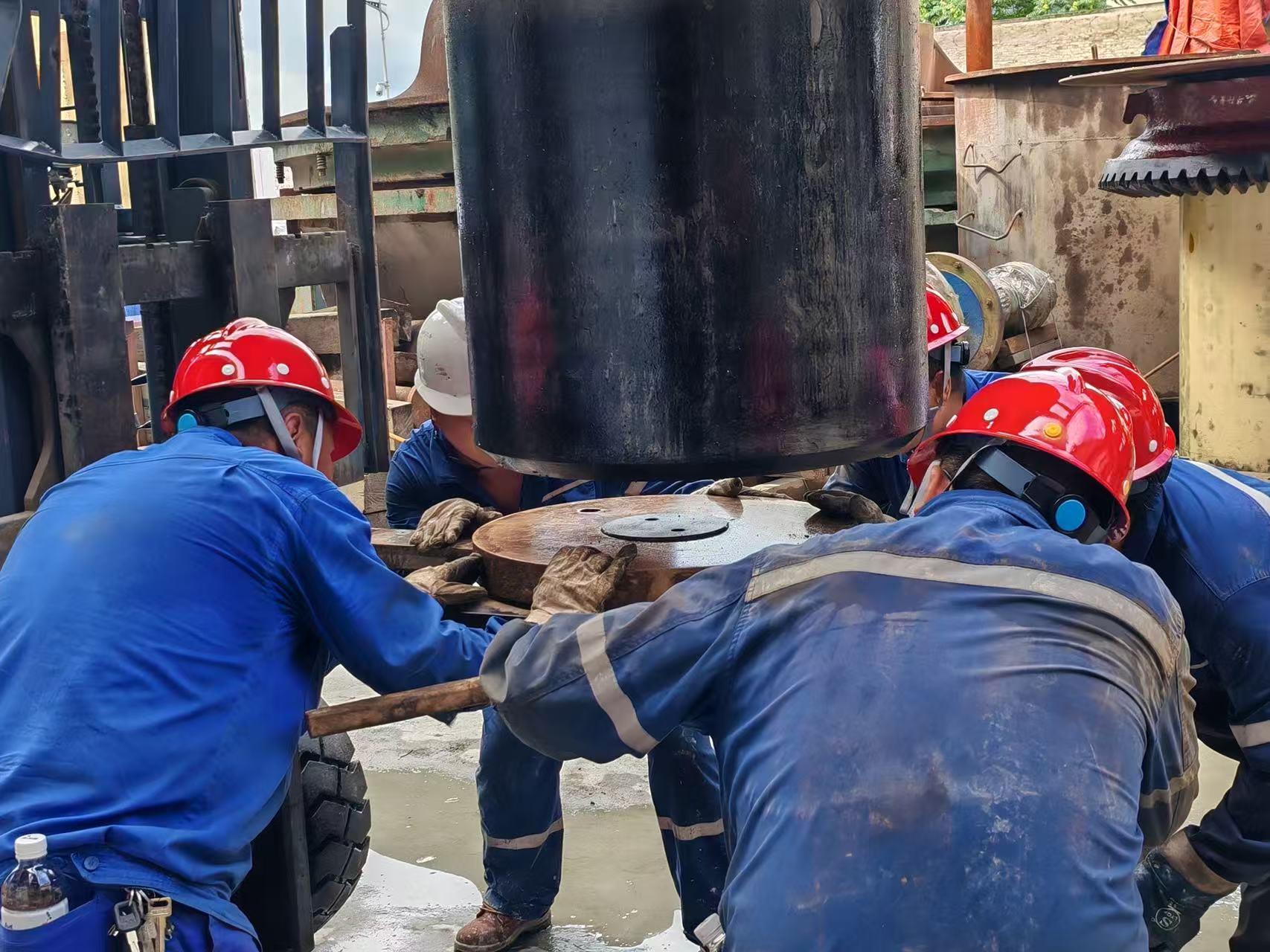 機械設(shè)備檢修忙。在碎礦車間新線中碎中修現(xiàn)場,檢查臂架襯套的磨損情況,打磨偏心套,連接冷卻器,更換定錐襯板等檢修任務(wù)逐一完成,各工種密切配合,在高溫的“烤”驗下高效協(xié)作。檢修現(xiàn)場熱火朝天,檢修人員齊整的工服、安全帽、防護眼鏡,汗珠滾落到設(shè)備上,滴落在工具上,浸透了工服,但檢修人員手中的扳手、萬用表、焊槍依然穩(wěn)、準、快,成為了設(shè)備可靠運轉(zhuǎn)的守護神,為安全生產(chǎn)平穩(wěn)高質(zhì)量保駕護航。