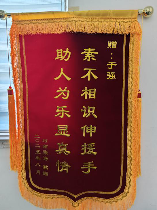 當(dāng)天下午14時(shí)許,原本平靜的海面暴雨驟至。安陽一家四口被猛烈的離岸流裹挾,迅速漂向深海。危急時(shí)刻,于強(qiáng)與三名游客不顧個(gè)人安危,毅然沖入滔天巨浪中展開救援。濁浪如墻,一次次將他們吞沒,但他們始終緊抓遇險(xiǎn)者,奮力抗?fàn)?。于?qiáng)在驚濤駭浪中死死抓住那位母親的游泳圈,拼盡全力向岸邊拖拽;其余三人則分別救起父親和兩名孩子。經(jīng)過近半小時(shí)的殊死搏斗,一家四口被平安送回岸邊。精疲力竭的于強(qiáng)在確認(rèn)被救者無礙后,默默離開了現(xiàn)場(chǎng)。近日,被救家屬將感謝信和錦旗送至于強(qiáng)所在單位寶鈦集團(tuán)動(dòng)力公司,他的英勇事跡才被眾人知曉。