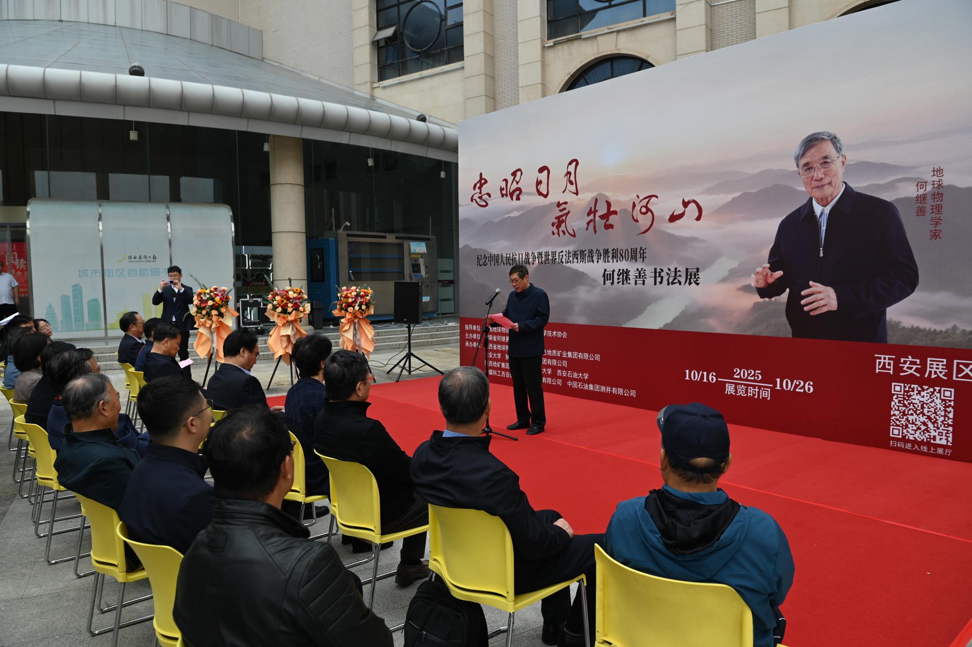 10月16日上午,“忠昭日月 氣壯河山——紀(jì)念中國人民抗日戰(zhàn)爭暨世界反法西斯戰(zhàn)爭勝利八十周年”何繼善院士書法巡回展(西安展)在陜西省圖書館開幕。