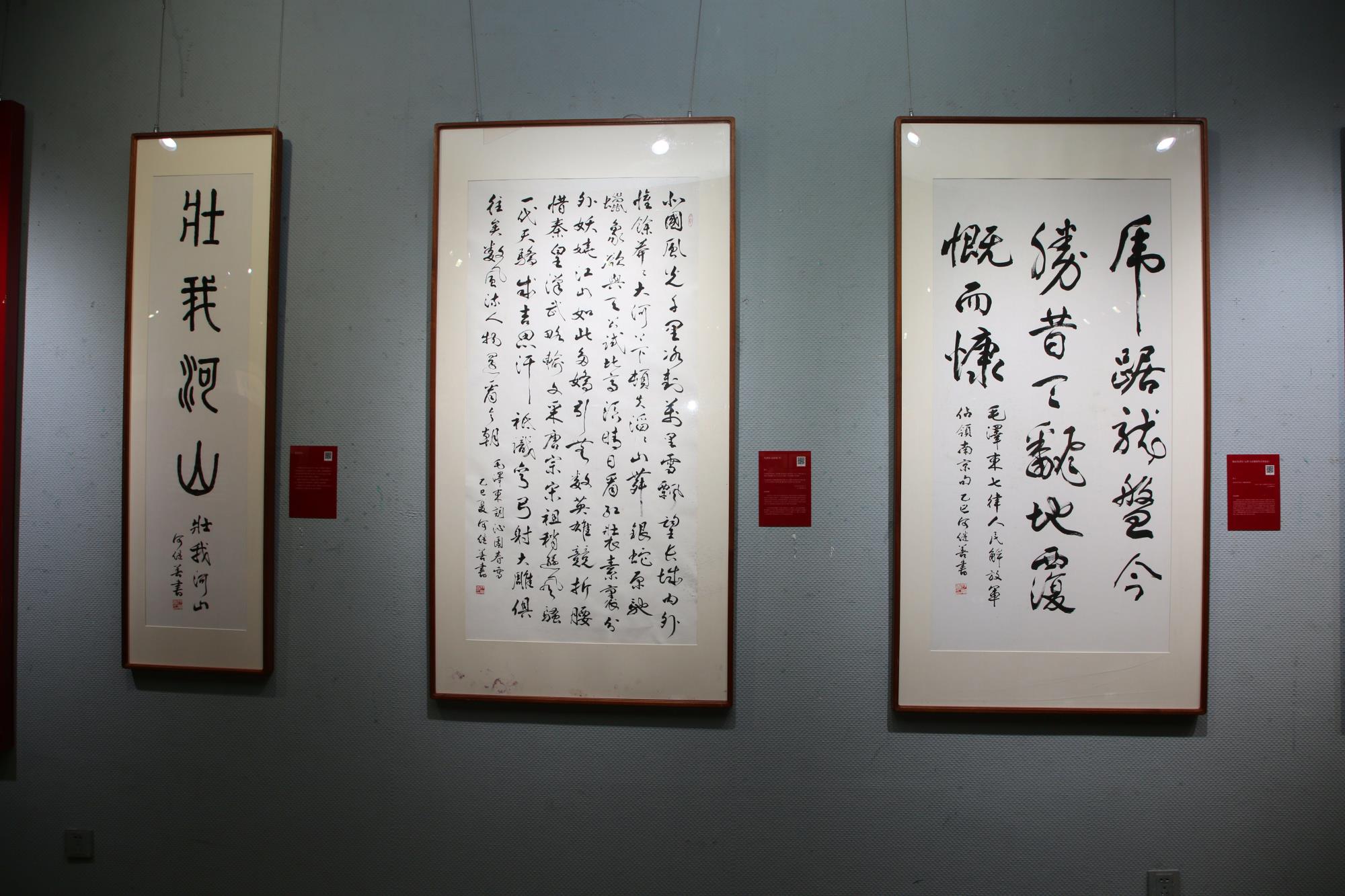 本次書法展共展出60余組作品,涵蓋六大主題篇章:“日寇罪行罄竹難書”“燈塔領(lǐng)航”“英烈風(fēng)范”“崢嶸歲月”“神州怒吼”“壯我河山”。何繼善院士以遒勁有力的筆觸,藝術(shù)地勾勒出抗戰(zhàn)時期英雄群像的壯烈氣概,深情謳歌了中華民族百折不撓的鋼鐵意志,淋漓盡致地抒發(fā)了炙熱而深厚的愛國情懷。一眾作品生動再現(xiàn)了烽火連天的歲月,用藝術(shù)形式回溯抗戰(zhàn)歷史、傳承民族精神,既是對勝利的紀(jì)念,更是對青年一代“銘記歷史、開創(chuàng)未來”的精神指引。