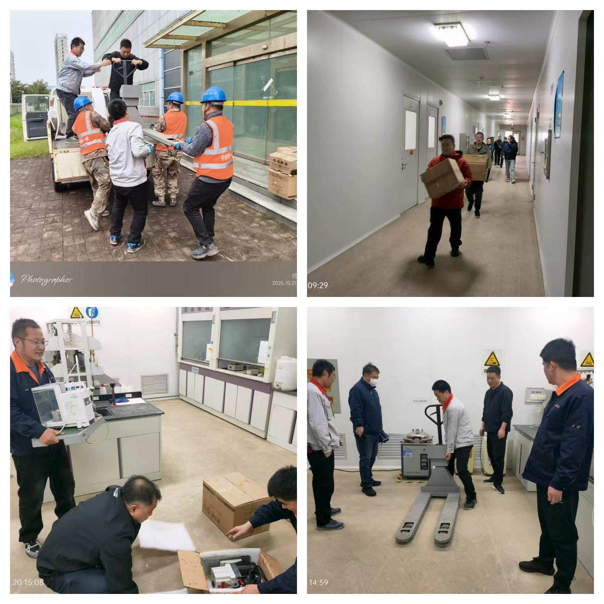 期間,天宏硅業(yè)提前完成設(shè)備清點(diǎn)、打包及手續(xù)辦理,為搬遷提供前置保障并參與設(shè)備搬遷全過(guò)程;光電科技多部門(mén)聯(lián)動(dòng)—— 動(dòng)能中心黨支部組織黨員投身儀器搬運(yùn)、布線(xiàn)擺放工作;科創(chuàng)區(qū)工程建設(shè)管理組專(zhuān)項(xiàng)解決大件搬運(yùn)難題;后勤中心主動(dòng)承接設(shè)備運(yùn)輸與家具拆裝;電池事業(yè)部提供辦公桌椅支持;科技規(guī)劃部及項(xiàng)目組全程參與協(xié)調(diào)各方,確保搬運(yùn)安全、布置合理。各參與方克服時(shí)間緊、任務(wù)重的挑戰(zhàn),以實(shí)干作風(fēng),保障行動(dòng)高效落地。