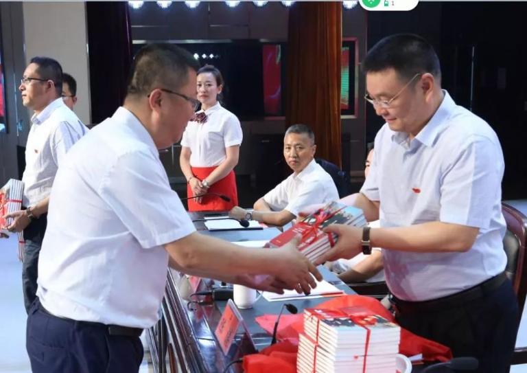 會(huì)上舉行了授書(shū)儀式,陳書(shū)記代表公司黨委向各二級(jí)黨委發(fā)放了紀(jì)實(shí)文學(xué)《梁家河》書(shū)籍。