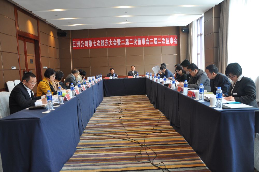 第七次股東大會(2014年年會)暨二屆二次董事會由集團(tuán)公司副總經(jīng)理、五洲礦業(yè)董事長李煒主持。會議審議通過了公司總經(jīng)理艾軍代表公司做的《多措并舉、適應(yīng)新常態(tài),砥礪前行、實(shí)現(xiàn)公司持續(xù)穩(wěn)健發(fā)展》工作報(bào)告和《2014年固定資產(chǎn)投資完成情況報(bào)告及2015年投資計(jì)劃》及《陜西五洲礦業(yè)股份有限公司“十三五”發(fā)展規(guī)劃(摘要)》;審議批準(zhǔn)了財(cái)務(wù)部主任王春梅代表公司做的《2014年度財(cái)務(wù)決算及2015年度財(cái)務(wù)預(yù)算報(bào)告》;審議通過了李煒董事長做的《2014年度董事會工作報(bào)告》和公司監(jiān)事會主席申占鑫做的《2014年度監(jiān)事會工作報(bào)告》;審議通過了《關(guān)于陜西五洲釩金屬材料科技有限公司氮化釩生產(chǎn)線爐窯改造工程的議案》,原則通過《陜西五洲礦業(yè)股份有限公司關(guān)于建設(shè)100噸/年高純金屬釩項(xiàng)目的議案》,要求按照項(xiàng)目審批、建設(shè)和固定資產(chǎn)投資規(guī)定程序,推進(jìn)有關(guān)工作。