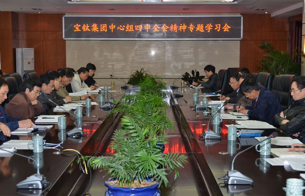 10月28日上午,寶鈦集團黨委中心學習組成員在公司九樓會議室,集中學習了《中國共產(chǎn)黨第十八屆中央委員會第四次全體會議公報》、《人民日報》社論《實現(xiàn)依法治國的歷史跨越》、中央紀委書記王岐山在中紀委第十八屆四次全會上的講話《治國必先治黨,治黨務必從嚴》等五篇專題文章,深刻領會了中共中央關于全面推進依法治國,建設中國特色社會主義法治體系,建設社會主義法治國家的精神。學習會由寶鈦集團黨委書記王文生主持,寶鈦集團領導班子成員及部分副總工程師、黨委部門負責人參加了學習會。