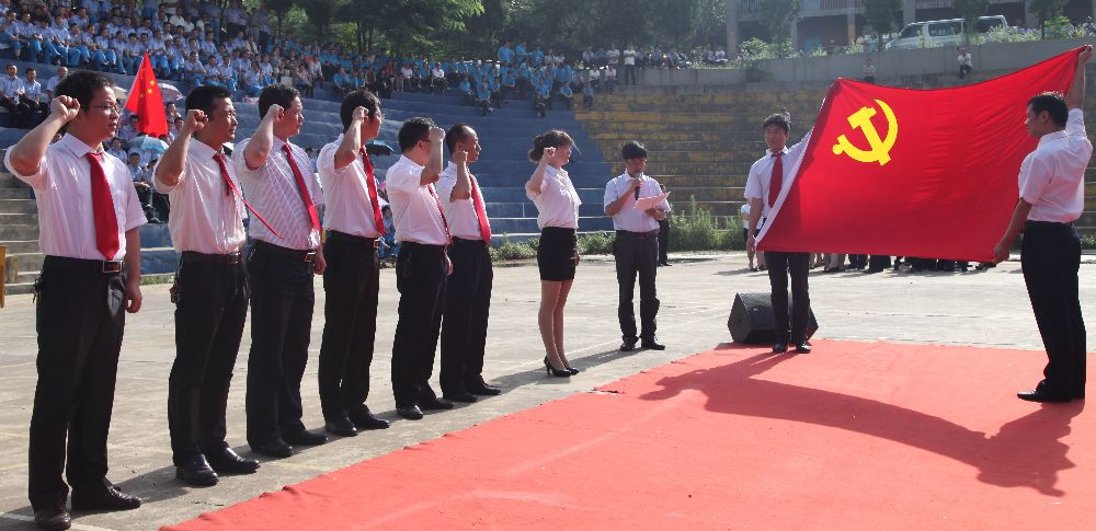 合唱比賽開始前,公司黨委舉行了新黨員宣誓儀式。在鮮紅的黨旗下,7名新發(fā)展黨員高舉右拳,以拳拳之心莊嚴(yán)宣誓,在鮮紅的黨旗下許下為共產(chǎn)主義事業(yè)奮斗終身的承諾。
