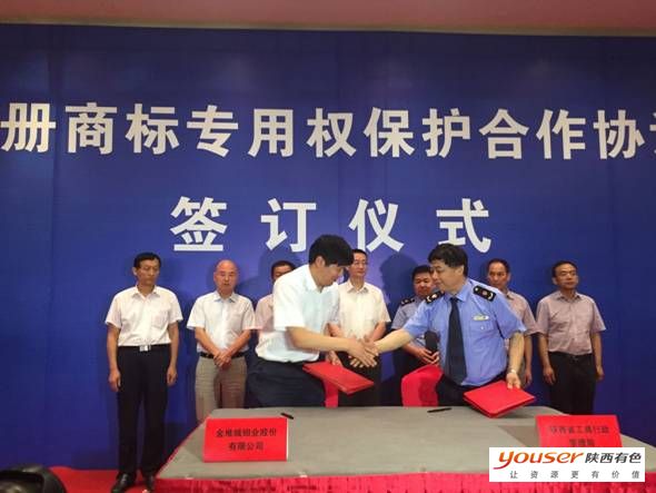 7月17日,由陜西省工商行政管理局舉辦的“注冊(cè)商標(biāo)專用權(quán)保護(hù)合作協(xié)議”簽約儀式在西安舉行。簽約儀式上,金鉬股份等我省15家注冊(cè)商標(biāo)擁有量較多、產(chǎn)品及服務(wù)市場(chǎng)知名度較高的企業(yè)分別與陜西省工商局簽訂了《注冊(cè)商標(biāo)專用權(quán)保護(hù)合作協(xié)議》。