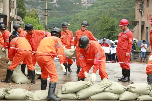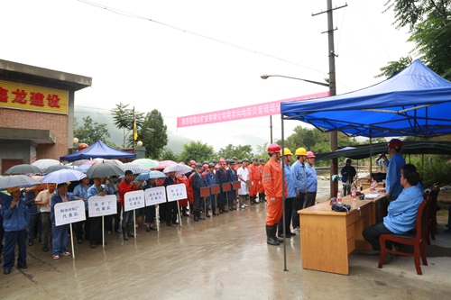 這是陜西鉛硐山礦業(yè)有限公司正在舉行的蔣家溝排渣場泥石流地質(zhì)災害現(xiàn)場處置應急演練的情景。
