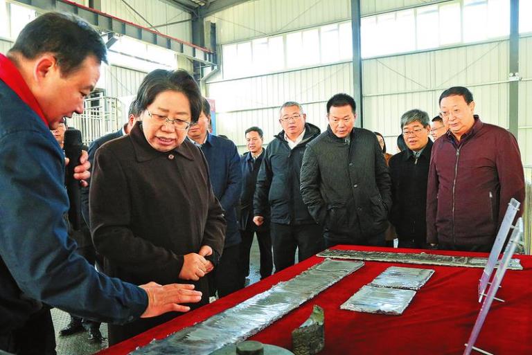 11月23日,商洛市重大項目建設現(xiàn)場觀摩會走進五洲礦業(yè)。在企業(yè)主要負責人的陪同下,商洛市委書記、市人大常委會主任陳俊一行到公司選礦廠和釩產(chǎn)業(yè)園參觀了全面復產(chǎn)及高端釩系列開發(fā)項目,觀看了以“科技興釩、 創(chuàng)造非凡”為主題的宣傳片、釩產(chǎn)業(yè)展廳、釩產(chǎn)業(yè)研究所和博士后創(chuàng)新實踐基地。隨后觀摩了年產(chǎn)100噸高純金屬釩生產(chǎn)線、全釩液流儲能電池展示廳和釩鋁合金生產(chǎn)線。