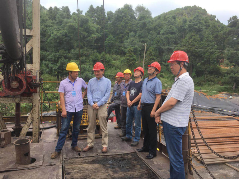 西北有色地礦集團(tuán)董事長(zhǎng)秦西社(右二)、總經(jīng)理高菊生(右三)深入711總隊(duì)貴州威寧熱水井項(xiàng)目調(diào)研