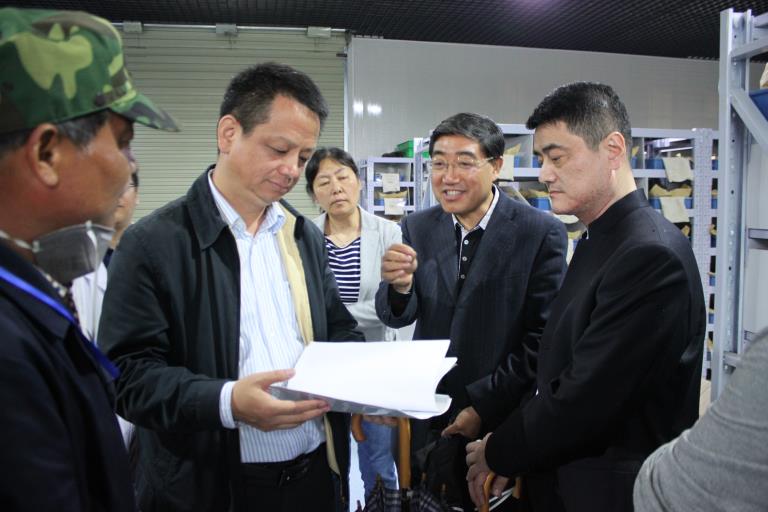生態(tài)環(huán)境部土壤環(huán)境管理司劉曉文副司長(zhǎng)(左二)參觀研究院土壤詳查樣品制備基地