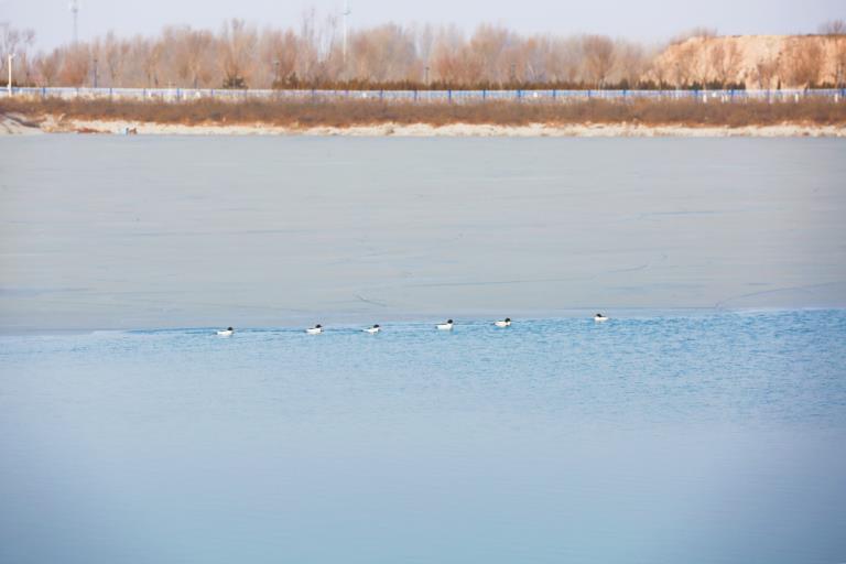 快看,這個(gè)冬天,榆林新材料集團(tuán)的人工湖迎來了一群來自“遠(yuǎn)方的客人”,經(jīng)過查驗(yàn),他們是難覓蹤跡的秋沙鴨。作為每年南北奔波的秋沙鴨群,他們中途臨時(shí)在人工湖棲息。據(jù)了解,秋沙鴨共有5種,中國有3種,即中華秋沙鴨、紅胸秋沙鴨和普通秋沙鴨,主要見于東部地區(qū),北起黑龍江,南至海南省。根據(jù)榆林日報(bào)2018年12月6日的官方微博顯示:入冬以來,有成千上萬只大雁、白天鵝、灰鶴、秋沙鴨、紅嘴鷗等候鳥從西伯利亞、內(nèi)蒙古等地,飛到榆林境內(nèi)的湖泊、草灘、河流等地棲息數(shù)日。