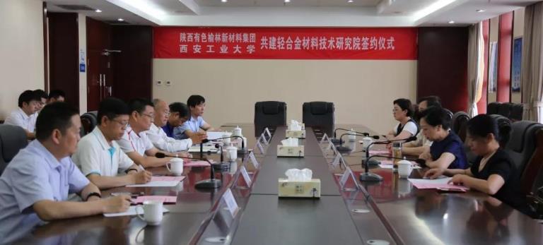 雙方在友好的氛圍中舉行了共建輕合金材料技術(shù)研究院的簽約儀式,柳曉峰、雷亞萍共同簽署了《共建輕合金材料技術(shù)研究院協(xié)議》。陳濤與西安工業(yè)大學(xué)校長(zhǎng)雷亞萍分別向?qū)Ψ劫?zèng)送了“輕合金材料技術(shù)研究院(產(chǎn)業(yè)化基地)”牌,與會(huì)人員合影留念。