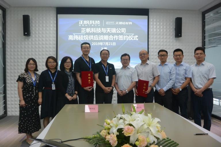 7月21日下午,陜西有色天宏瑞科硅材料有限責(zé)任公司(簡稱天瑞硅材料)與上海正帆科技股份有限公司(簡稱正帆科技)硅烷氣采供合同簽約儀式在上海正帆科技大廈成功舉行。公司總經(jīng)理蘇旭盛、副總經(jīng)理趙渭濱,正帆科技總裁俞東雷、高級副總裁劉凱倫、電子材料事業(yè)部總經(jīng)理周力,REC中國區(qū)業(yè)務(wù)總監(jiān)龍祖安等出席簽約儀式。