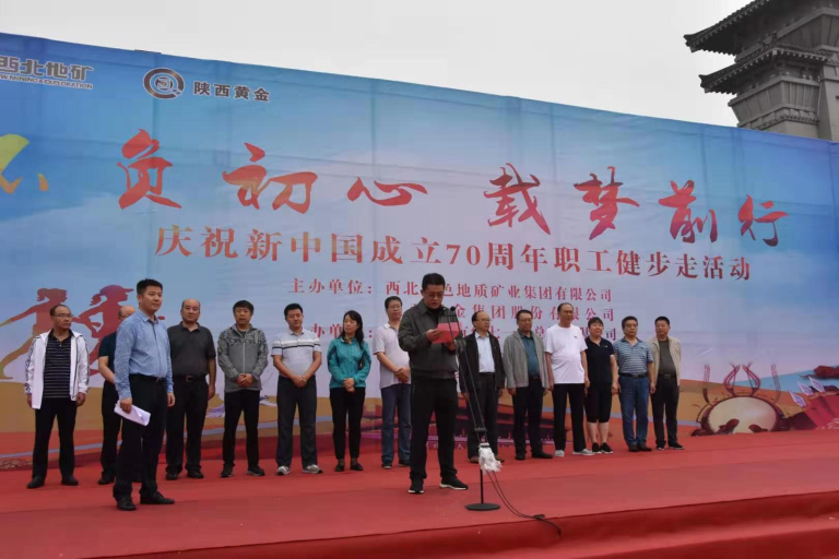 九月的漢中,秋雨綿綿,丹桂飄香。為慶祝即將到來的新中國70華誕,倡導(dǎo)健康生活、高效工作的理念,打造更加奮進、更具活力的職工隊伍,9月11日,地礦集團、黃金集團在風(fēng)景如畫的漢中市天漢濕地公園,舉辦了以“不負(fù)初心 載夢前行”為主題的職工健步走活動,拉開了兩集團慶祝新中國成立70周年系列活動的帷幕。兩集團黨委書記、董事長秦西社通過活動組委會向所有參加活動人員表示問候,并祝愿比賽取得圓滿成功,兩集團黨委副書記、工會主席李忠民全程參與,兩集團工會副主席楊永哲主持活動,來自兩集團本部及各單位的14支代表隊共計154名干部職工參加活動。