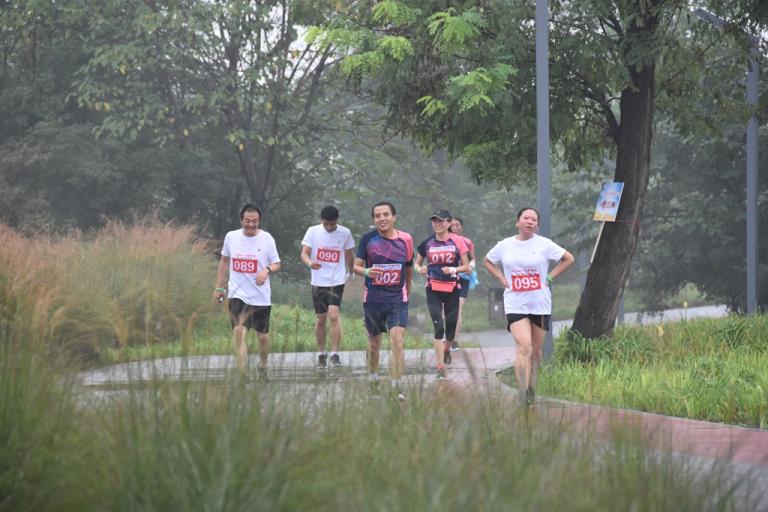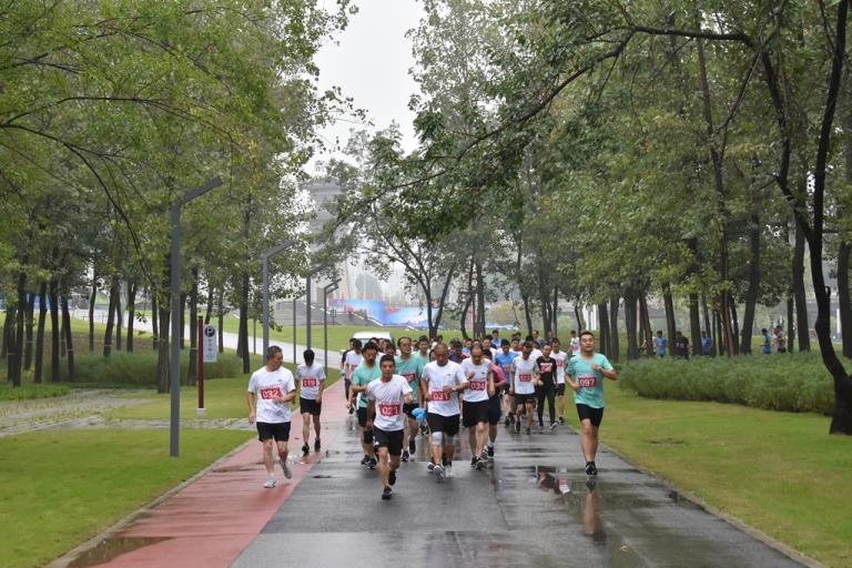 隨后參賽隊員以飽滿的精神狀態(tài)集體高歌《我和我的祖國》,并錄制快閃視頻,為新中國成立70周年獻禮。伴隨著優(yōu)美的旋律,大家揮動著手中的小紅旗,用真誠的歌聲抒發(fā)拳拳愛國之情。隨著比賽令的發(fā)出,大家精神抖擻,意氣風(fēng)發(fā),沿著規(guī)定的線路前行。浩蕩的隊伍,矯健的步伐,昂揚的士氣,充分展現(xiàn)了西北地勘人奮發(fā)有為、積極向上的精神風(fēng)貌,成為江畔一道靚麗的風(fēng)景線,引得途經(jīng)的市民駐足觀看。