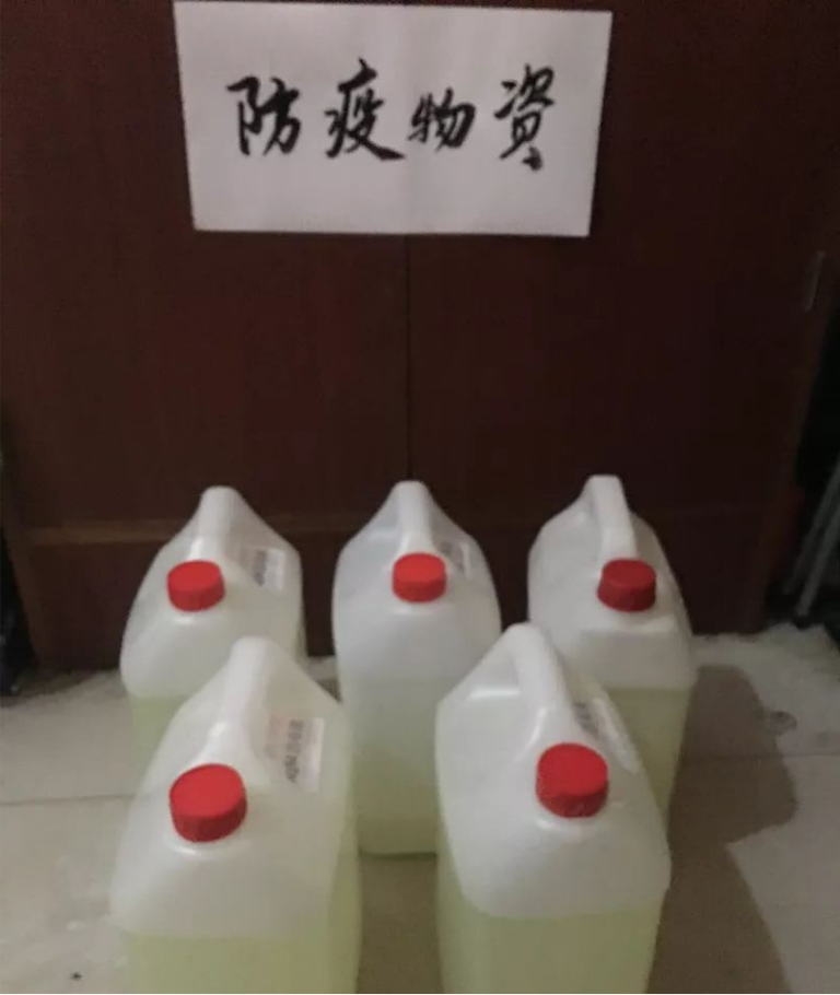 2月6日,物探隊(duì)職工張瑞霖和愛人一同為公司送來了5桶消毒液。張瑞霖是公司的一名90后普通職工,在得知公司消毒液消耗很大并且購買困難的情況下,她立即搶購了5桶5升裝消毒液,馬不停蹄地送往公司。