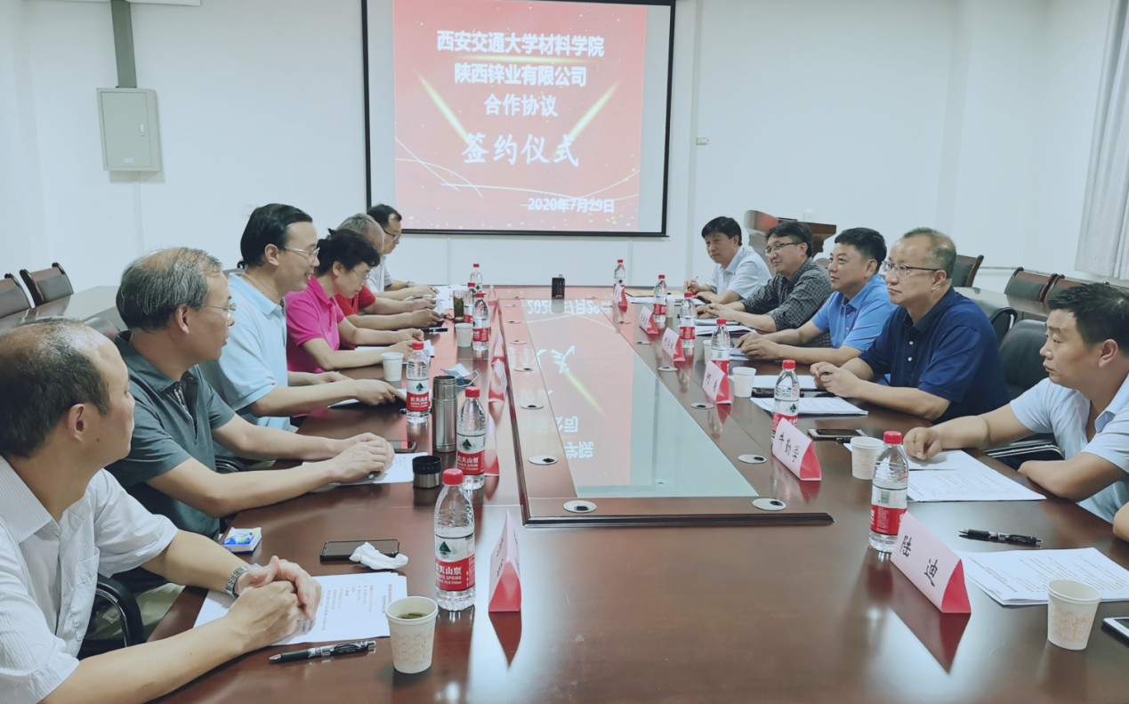 7月29日, 陜西鋅業(yè)有限公司與西安交通大學材料科學與工程學院召開校企合作座談會,并舉行校企合作簽約儀式。雙方就推動陜西鋅業(yè)鋅資源及鋅基合金新材料、新工藝、新產(chǎn)品的技術集成與產(chǎn)業(yè)鏈精深加工,按照“優(yōu)勢互補、資源共享、互惠互利、共贏發(fā)展”的原則,以企業(yè)委托課題形式開展相關鋅基新材料、新技術、新工藝研究,并以緊密性戰(zhàn)略聯(lián)盟的方式聯(lián)合參與相關重點、重大科研項目,通過校企合作,推動雙方共同發(fā)展。陜西有色金屬集團科技部主任何瑜參加座談會并見證簽約儀式。