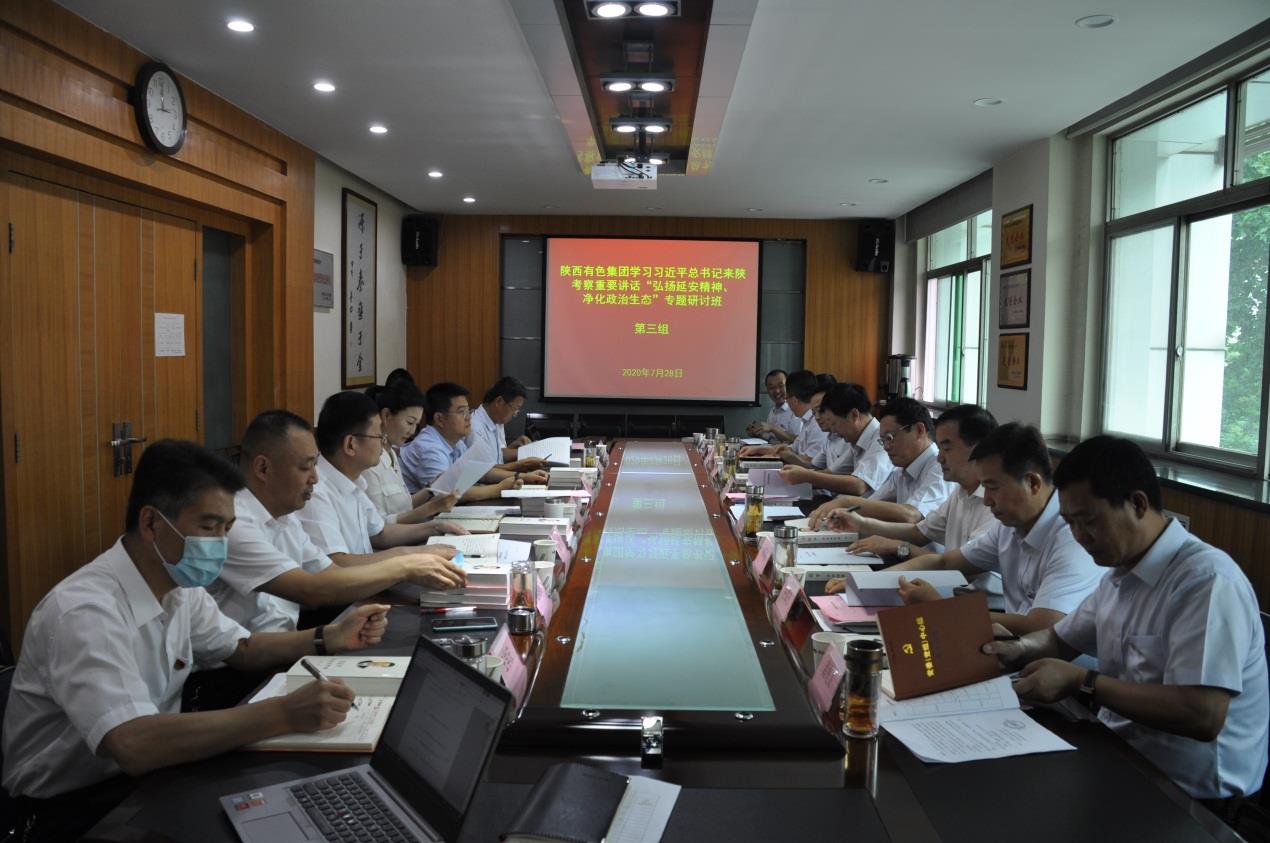 陜西有色金屬集團學(xué)習(xí)習(xí)近平總書記來陜考察重要講話“弘揚延安精神,凈化政治生態(tài)”專題研討班第三組在兩集團進行集中學(xué)習(xí)