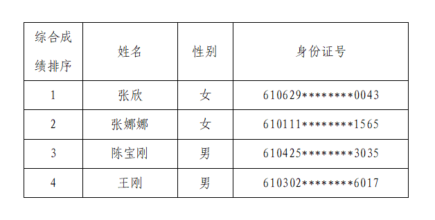 陜西有色金屬集團(tuán)選配總部紀(jì)檢監(jiān)察一般工作人員公開報(bào)名、資格初審、筆試、資格復(fù)審、面試等程序已經(jīng)結(jié)束,按照綜合成績(jī)排序,現(xiàn)將擬聘用的4名人員情況予以公示。