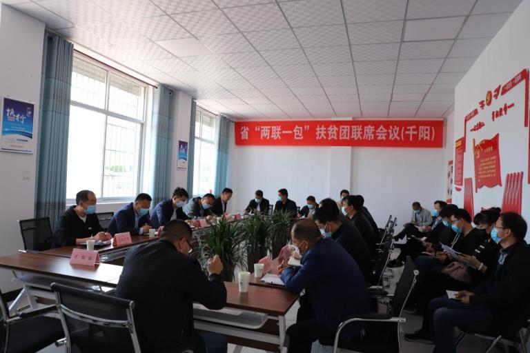 2020年4月26日,陜西有色扶貧團(tuán)省級“兩聯(lián)一包”第一次聯(lián)席會在陜西有色千陽產(chǎn)業(yè)扶貧有限公司會議室召開,千陽縣扶貧辦、扶干辦相關(guān)負(fù)責(zé)人,扶貧團(tuán)各成員單位分管領(lǐng)導(dǎo)、駐村隊員共30余人參加會議。會議由千陽縣政府副縣長楊軍輝主持,陜西有色集團(tuán)扶貧辦主任、千陽扶貧公司黨支部書記、董事長艾軍參加會議并作了講話。