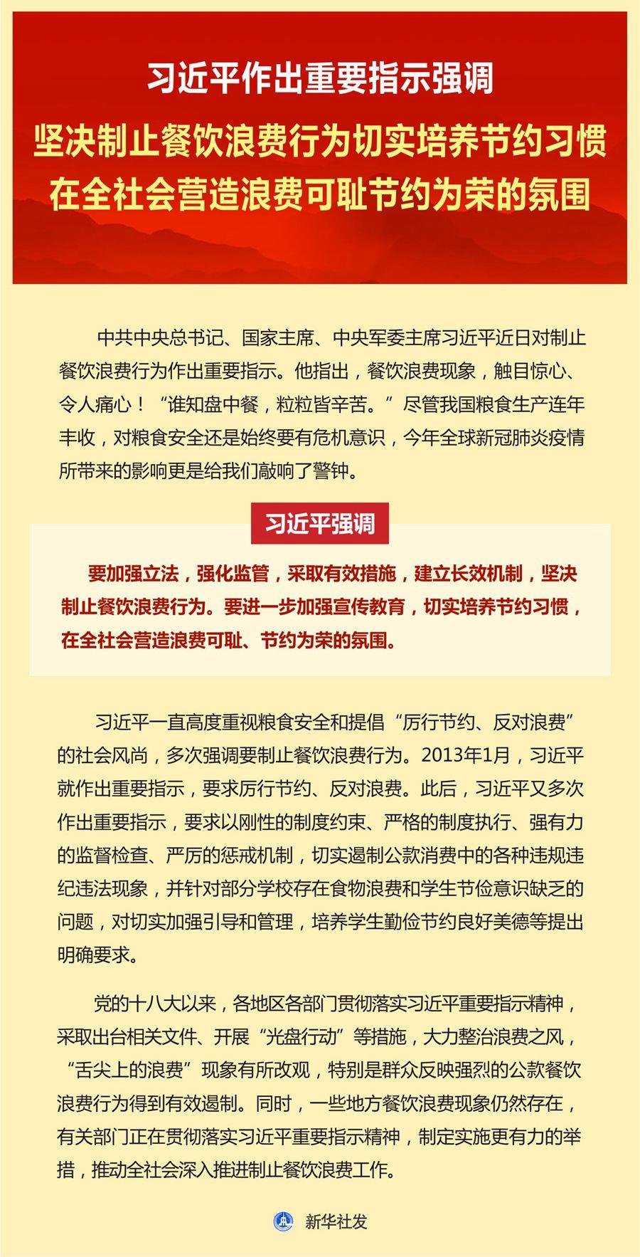 【學(xué)習(xí)資料】習(xí)近平作出重要指示強(qiáng)調(diào)堅決制止餐飲浪費(fèi)行為切實培養(yǎng)節(jié)約習(xí)慣在全社會營造浪費(fèi)可恥節(jié)約為榮的氛圍