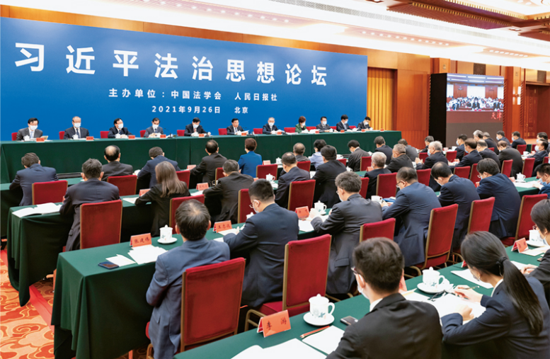 2021年9月26日,由中國法學(xué)會(huì)和人民日?qǐng)?bào)社聯(lián)合主辦的習(xí)近平法治思想論壇在京舉行。論壇以“堅(jiān)定不移走中國特色社會(huì)主義法治道路,為全面建成社會(huì)主義現(xiàn)代化強(qiáng)國而努力奮斗”為主題,旨在推動(dòng)社會(huì)各界特別是法學(xué)法律界認(rèn)真學(xué)習(xí)、深入研究、扎實(shí)宣傳習(xí)近平法治思想,自覺用習(xí)近平法治思想武裝頭腦、指導(dǎo)實(shí)踐、推動(dòng)工作,譜寫新時(shí)代全面依法治國新篇章?! 睹裰髋c法制》社記者 戎珊/攝