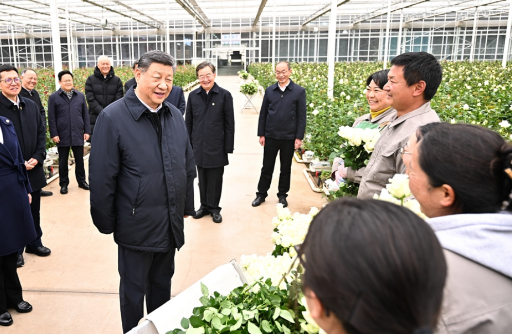 這是19日下午,習(xí)近平在麗江現(xiàn)代花卉產(chǎn)業(yè)園展廳,察看鮮切花品種展示。