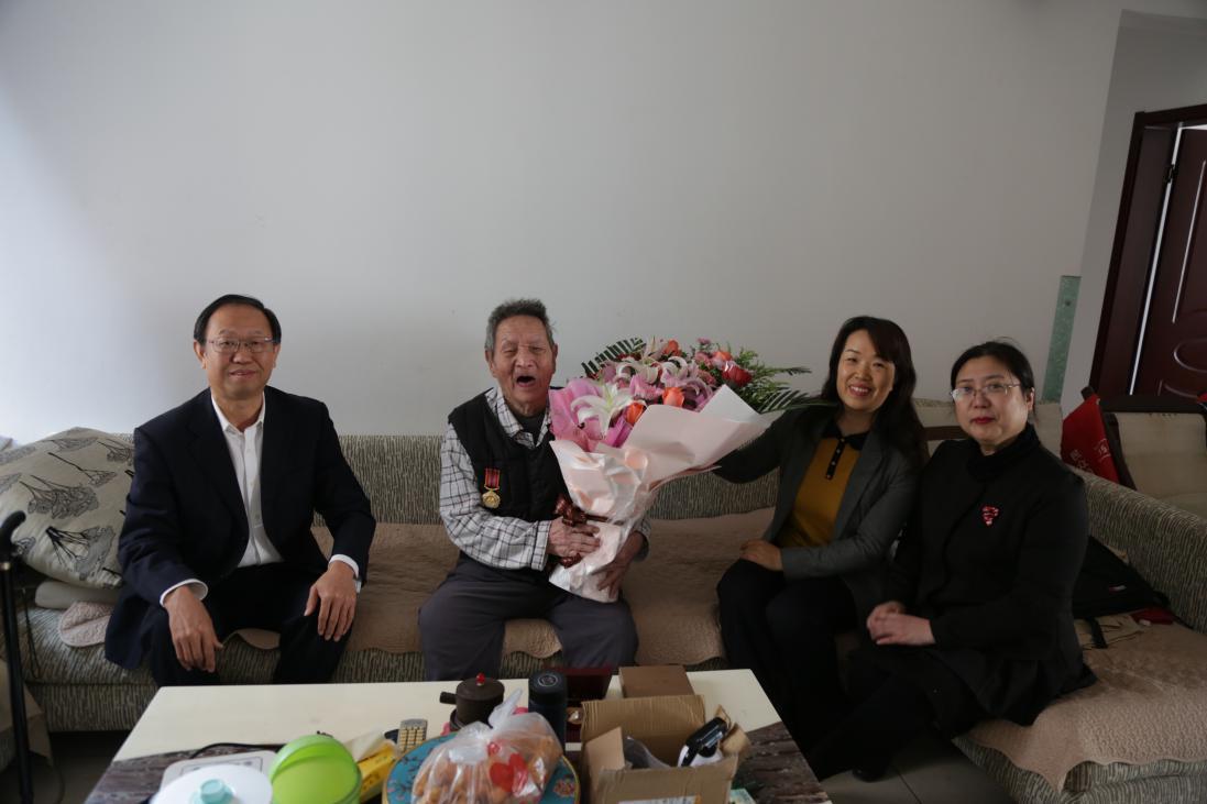 在舉國紀念中國人民志愿軍抗美援朝出國作戰(zhàn)70周年之際,10月23日,地礦集團物化探總隊公司總經(jīng)理郭文波、黨委書記李玉珍一行,代表公司看望慰問了退休老職工——抗美援朝老戰(zhàn)士李國賓,為老人送去鮮花和慰問金,并為他佩戴“中國人民志愿軍抗美援朝出國作戰(zhàn)70周年”紀念章。