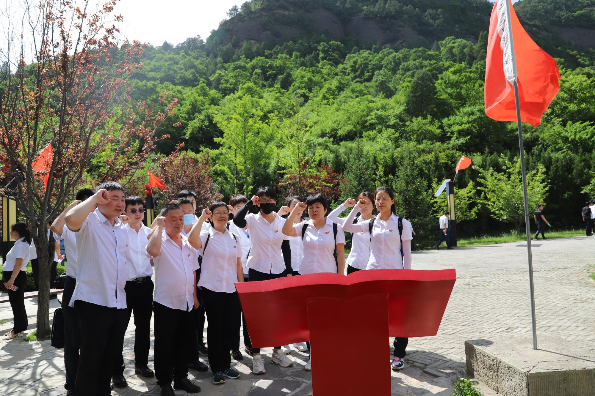 來到薛家寨革命舊址,踏入當年英雄流血捍衛(wèi)的地方,手撫過猶如斧劈刀削般的峰壁,參觀著曾經(jīng)那群飽含理想奮斗者的棲身之所,這里深溝高壑、雄奇險峻,不禁感嘆革命先輩理想之高,意志之堅,革命之苦。在冶礦集團機關支部書記杜玉娟同志的帶領下,大家重溫入黨誓詞,用錚錚誓言,鐫刻赤誠初心。