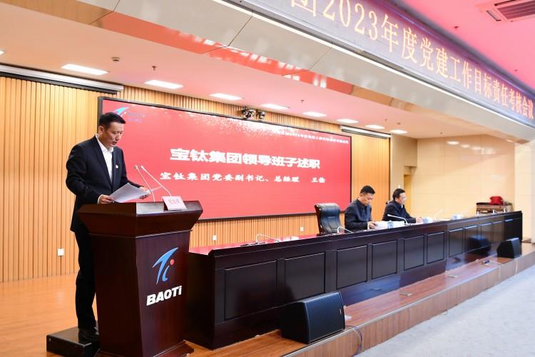 寶鈦集團(tuán)黨委副書記、總經(jīng)理王儉代表集團(tuán)領(lǐng)導(dǎo)班子述職。他從企業(yè)經(jīng)營業(yè)績完成情況、黨建工作目標(biāo)責(zé)任完成情況、存在問題及原因分析等三個方面詳細(xì)匯報了寶鈦集團(tuán)2023年工作,并提出了2024年工作舉措。