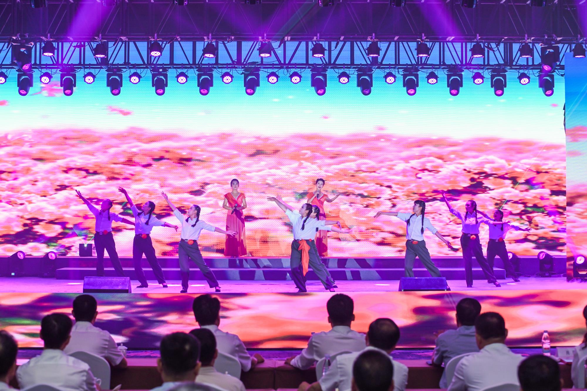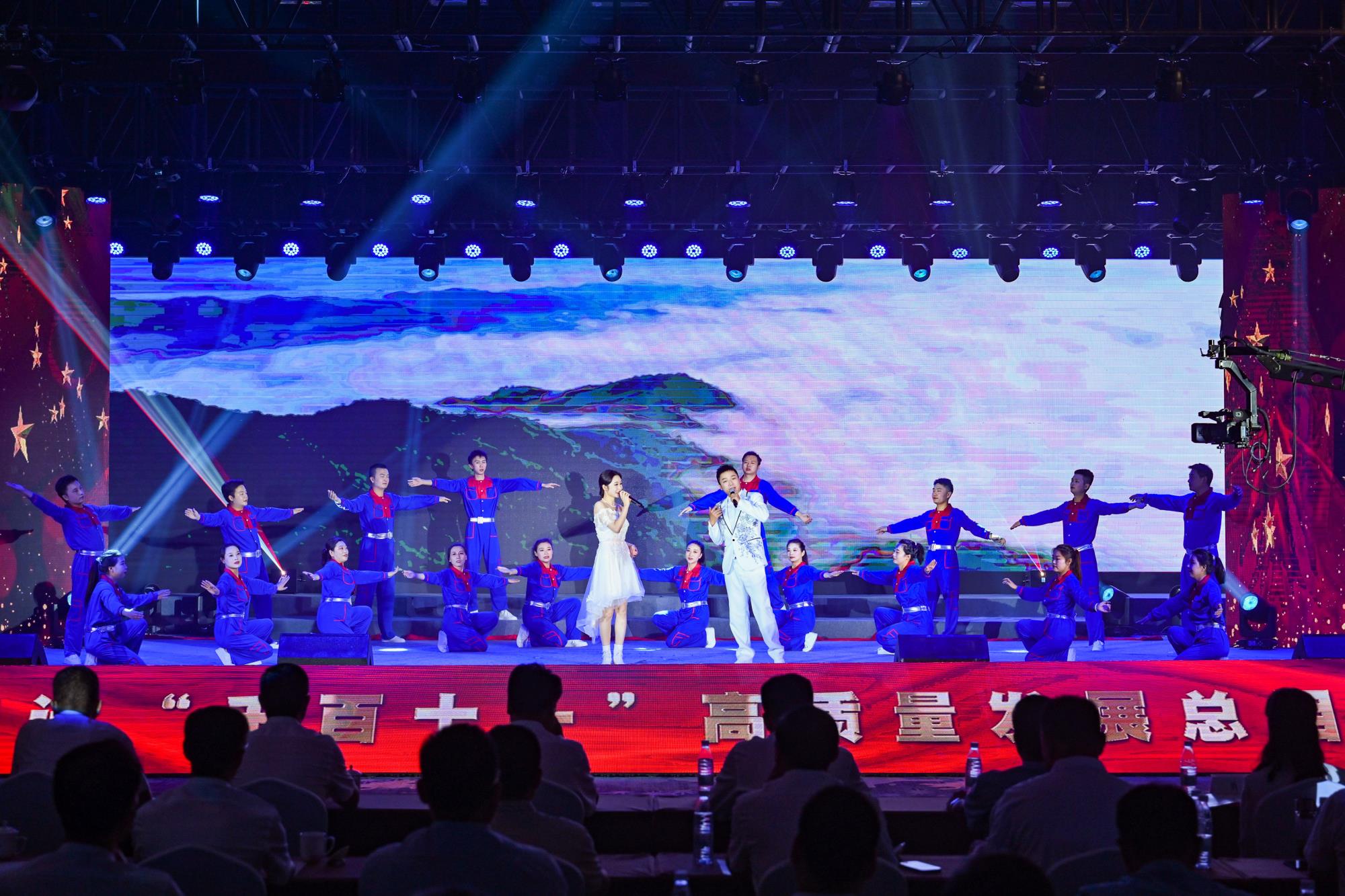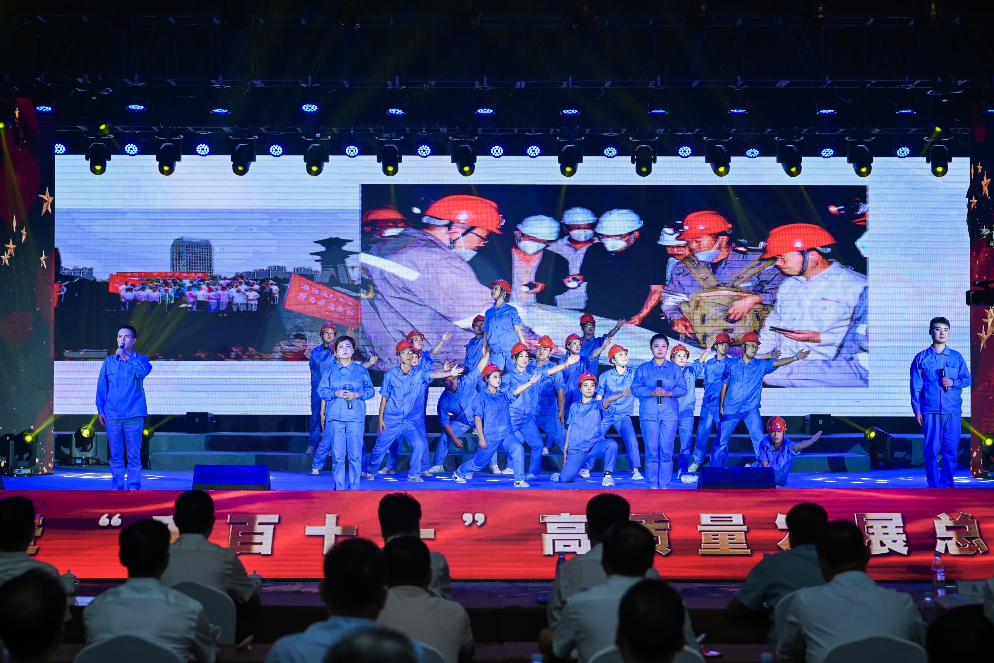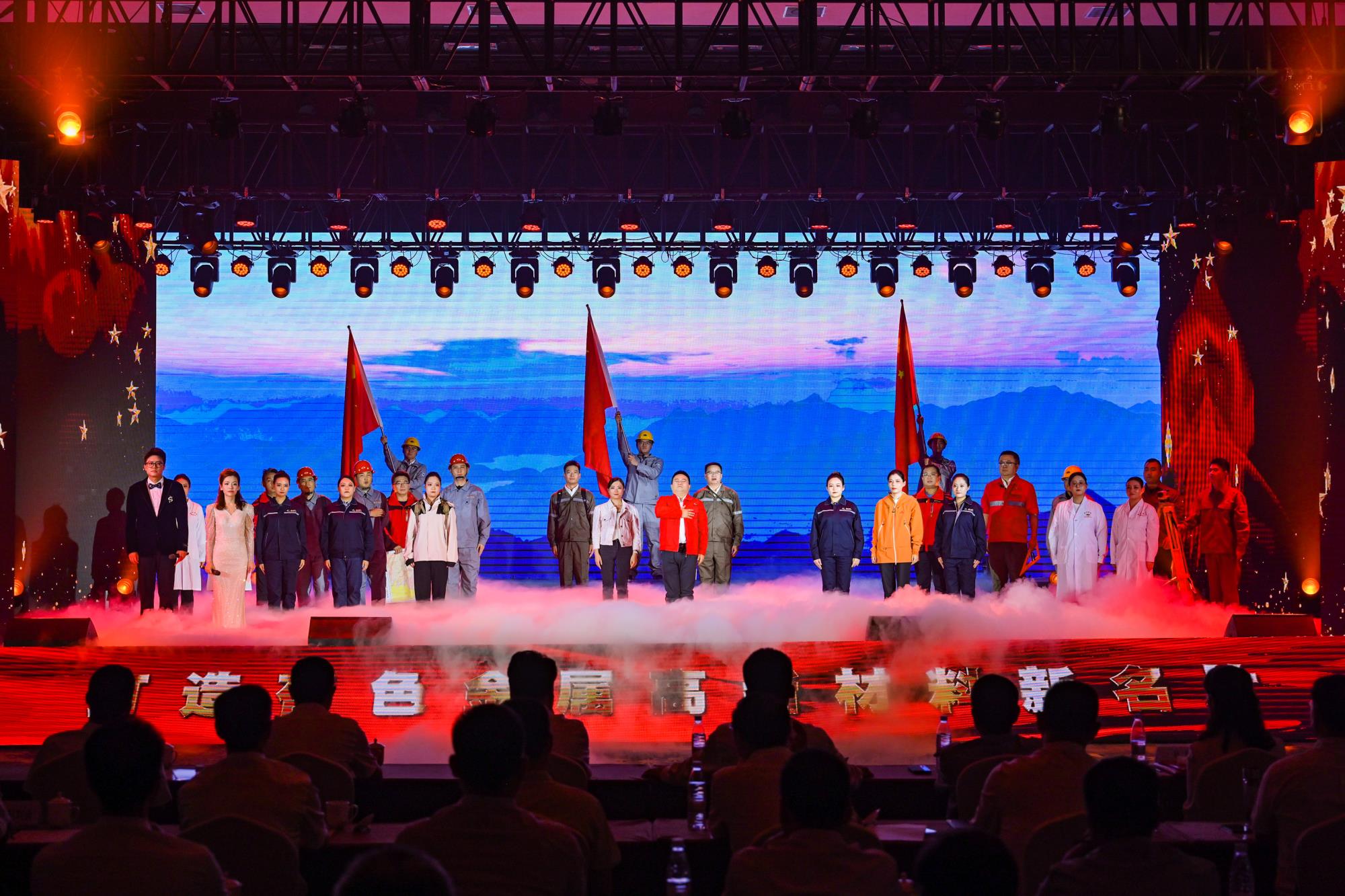“我們都是奮斗者,報國夙愿挺身償。勇立潮頭搏浪去,萬眾攻堅鑄輝煌。肩擔(dān)著使命創(chuàng)偉業(yè),復(fù)興路上圓夢想!”一首首動人的歌曲,一段段優(yōu)美的舞蹈,一句句深情的朗誦,傳遞著對偉大祖國的無限祝福,對有色事業(yè)的執(zhí)著熱愛,對美好生活的熾熱向往,凝聚起廣大職工為實(shí)現(xiàn)中國夢、強(qiáng)企夢而不懈奮斗的壯志豪情。以磐石之志,堅地質(zhì)初心,廣大職工表示將立足本職、擔(dān)當(dāng)作為,為實(shí)現(xiàn)兩集團(tuán)高質(zhì)量跨越發(fā)展,奮進(jìn)陜西有色金屬集團(tuán)“千百十一”總目標(biāo)再創(chuàng)佳績、再立新功。兩集團(tuán)領(lǐng)導(dǎo)班子成員、部分外部董事,機(jī)關(guān)全體人員,權(quán)屬單位主要負(fù)責(zé)人、工會主席、受表彰代表和職工代表等300余人在現(xiàn)場觀看演出。本次活動通過新媒體平臺進(jìn)行了圖片直播,截至發(fā)稿前,累計吸引12萬余人次線上觀看。