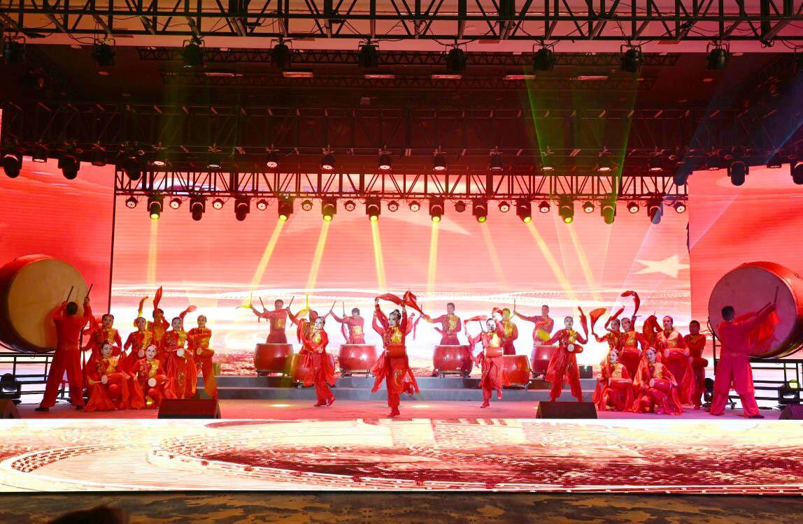 演出在氣勢磅礴、聲韻鏗鏘的舞蹈《再唱東方紅》中拉開帷幕,安塞腰鼓震天響,一曲高歌壯豪情,令在場觀眾心潮澎湃。