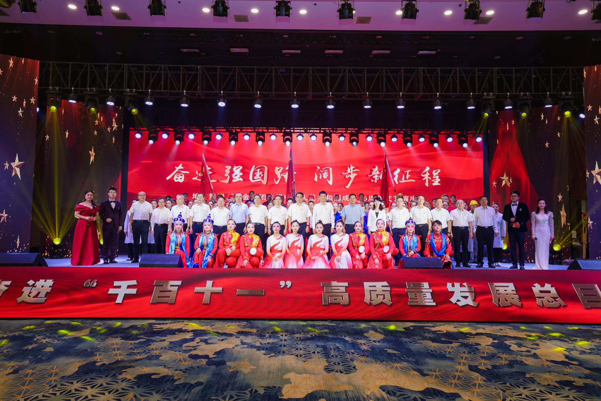 盛世歡歌慶華誕,更立壯志譜新篇。9月24日,地礦集團(tuán)、黃金集團(tuán)舉行慶祝新中國成立75周年文藝演出暨黨建成果表彰大會,厚植愛國情懷,砥礪強(qiáng)國之志,獻(xiàn)禮新中國成立75周年。同時,對兩集團(tuán)近年來黨建工作成果進(jìn)行表彰,號召廣大干部職工團(tuán)結(jié)奮進(jìn)、拼搏創(chuàng)新,全力推動兩集團(tuán)高質(zhì)量跨越發(fā)展。